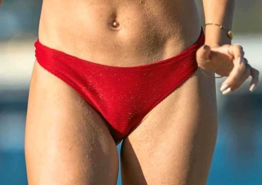Agatha Vega se déshabille au bord de la piscine