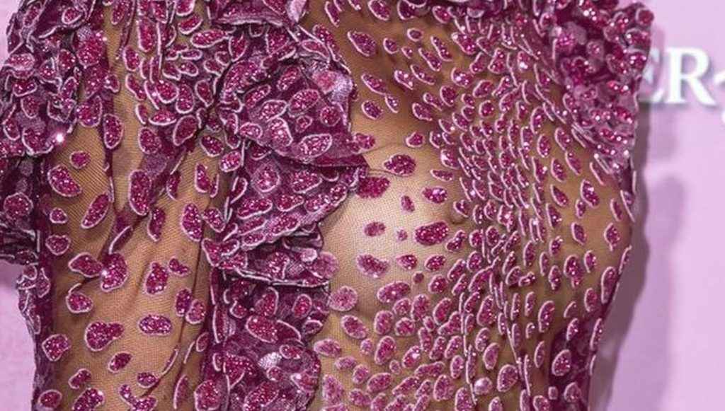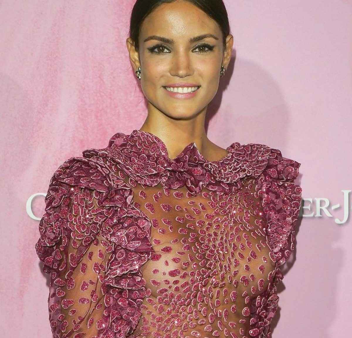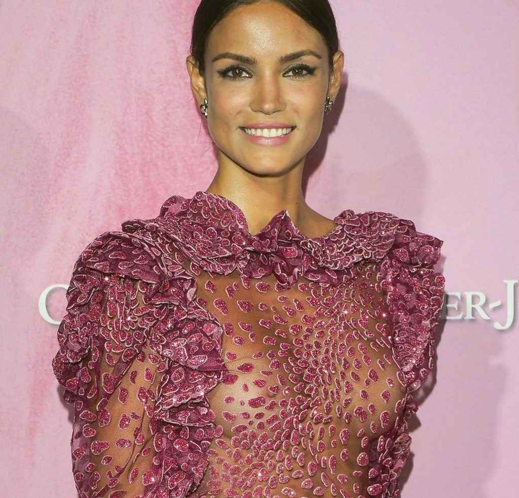 Sofia Resing seins nus par transparence au Gala amfar à Paris
