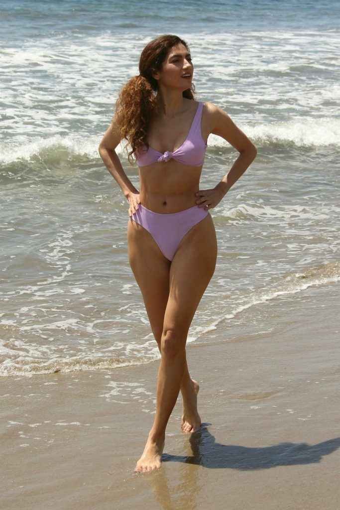 Blanca Blanco dans un bikini mauve à Malibu
