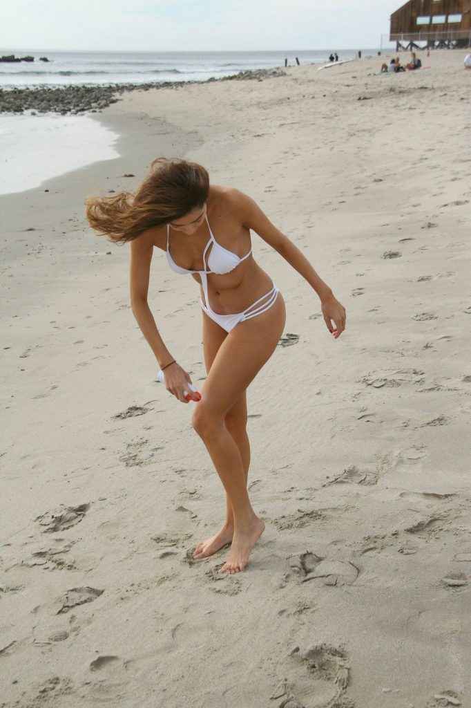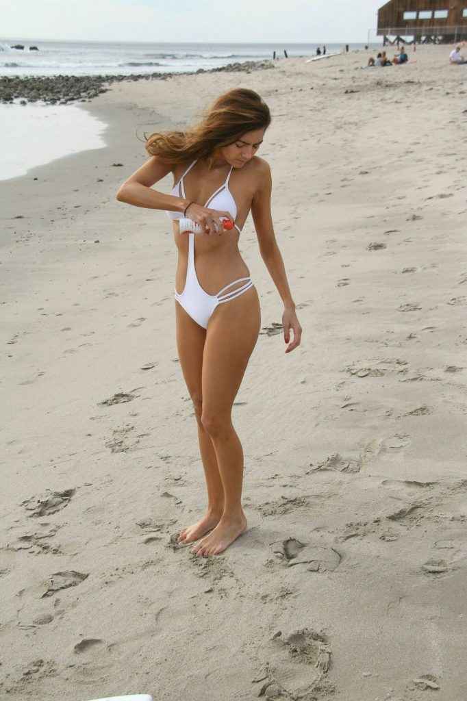 Blanca Blanco dans un maillot de bain blanc