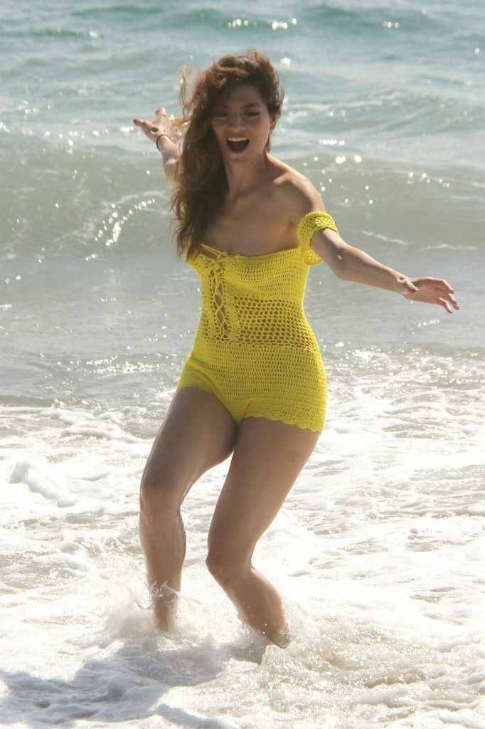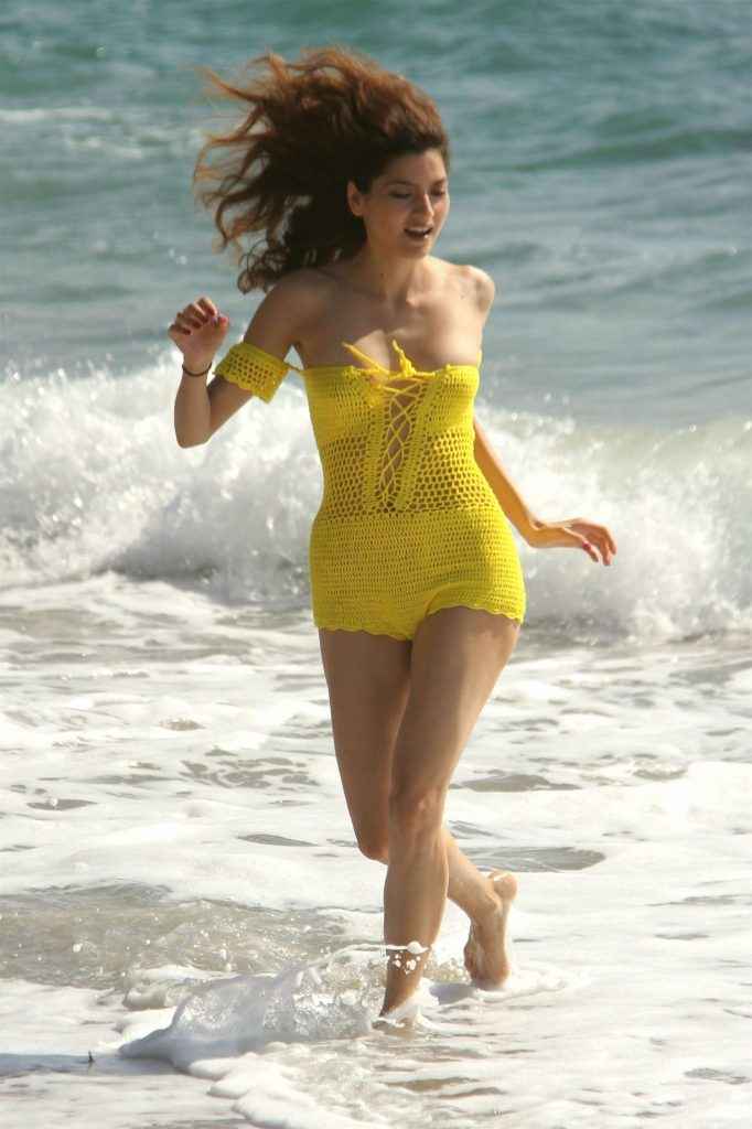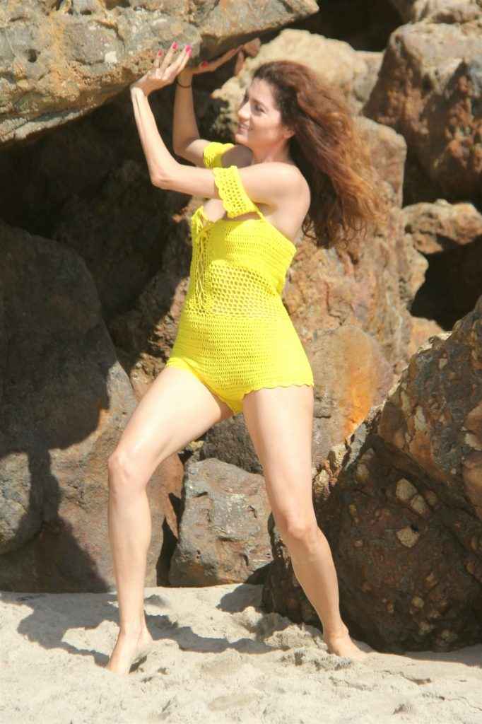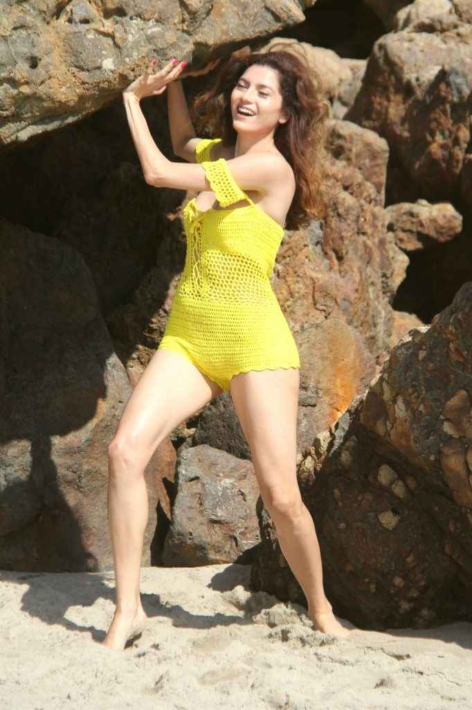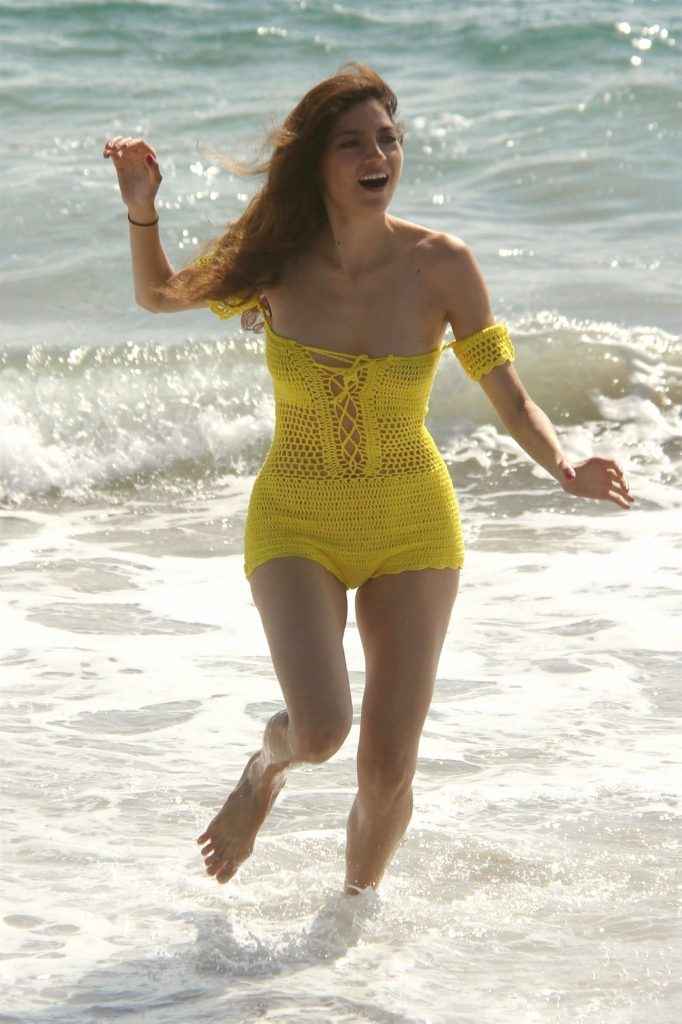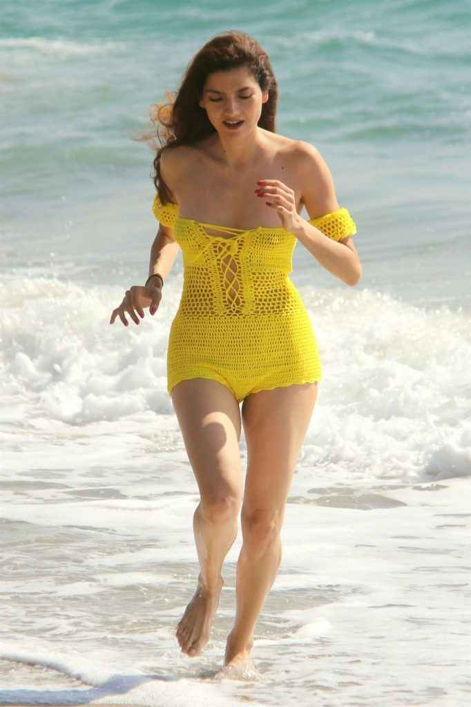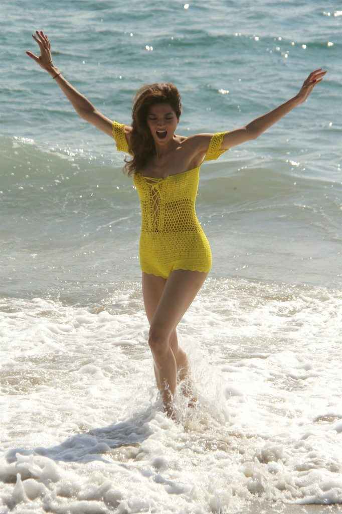 Blanca Blanco dans un maillot de bain jaune à Malibu