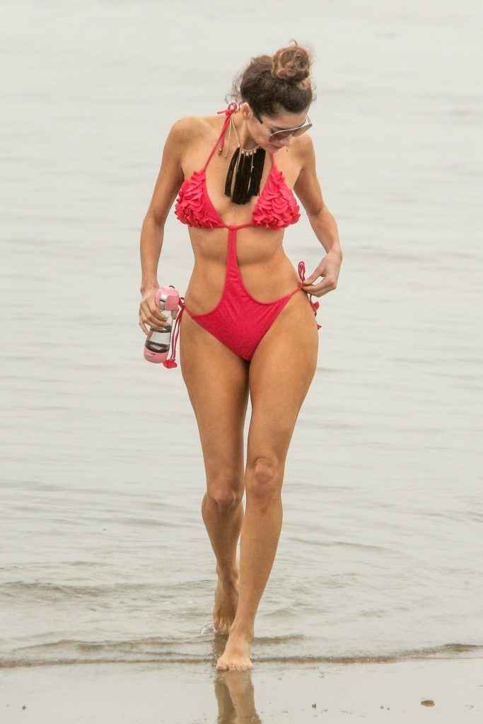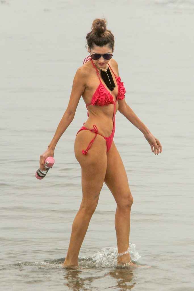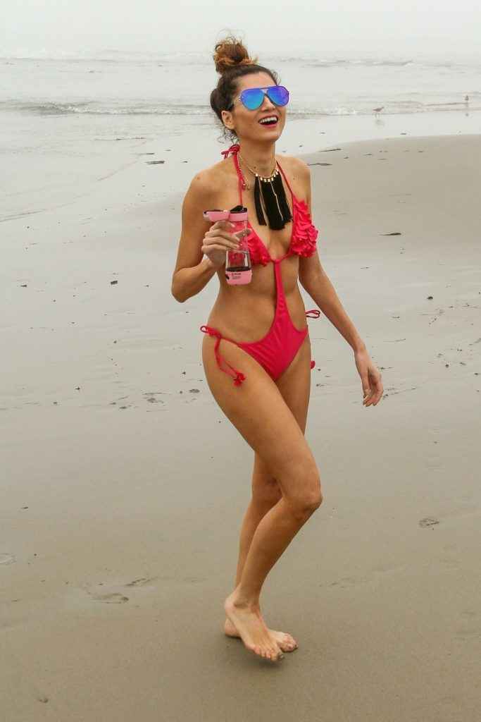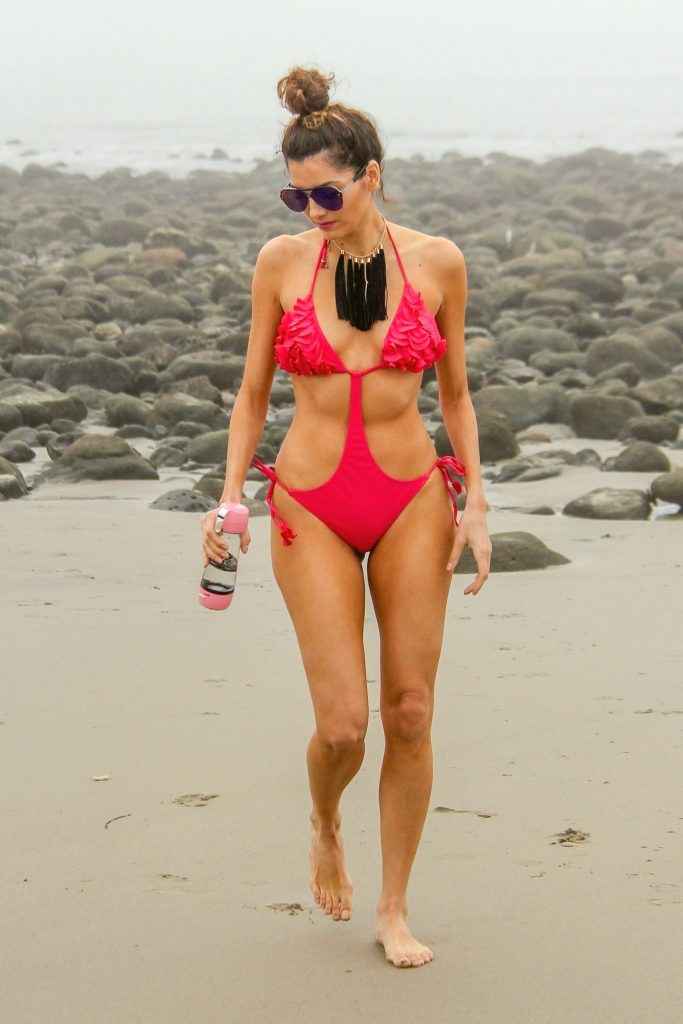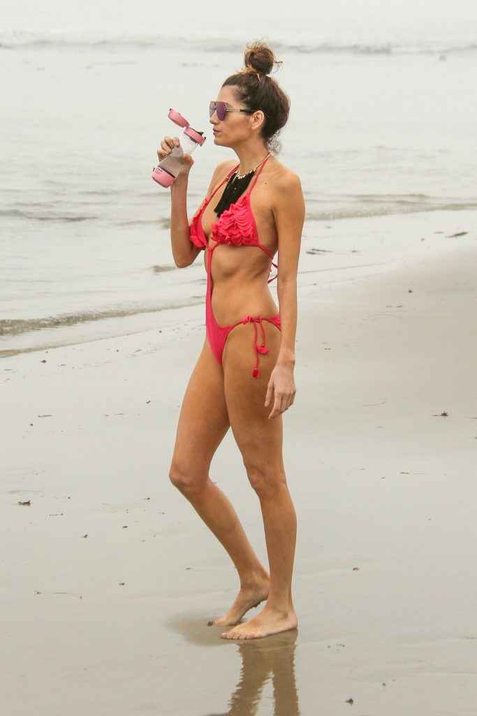 Blanca Blanco dans un maillot de bain rose à Malibu