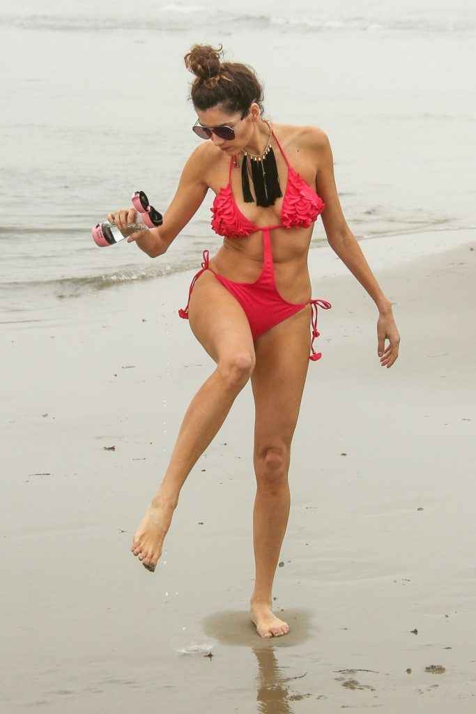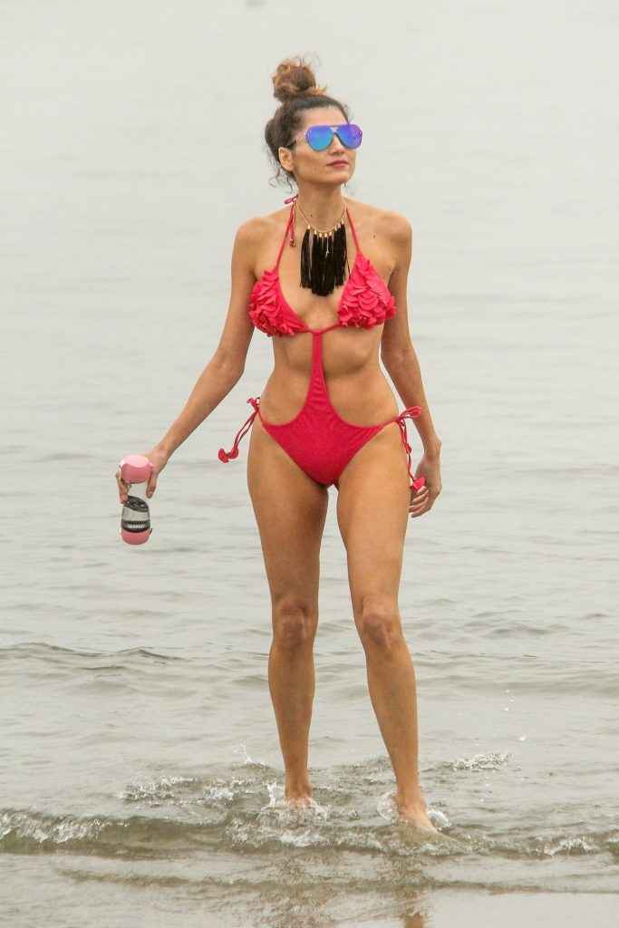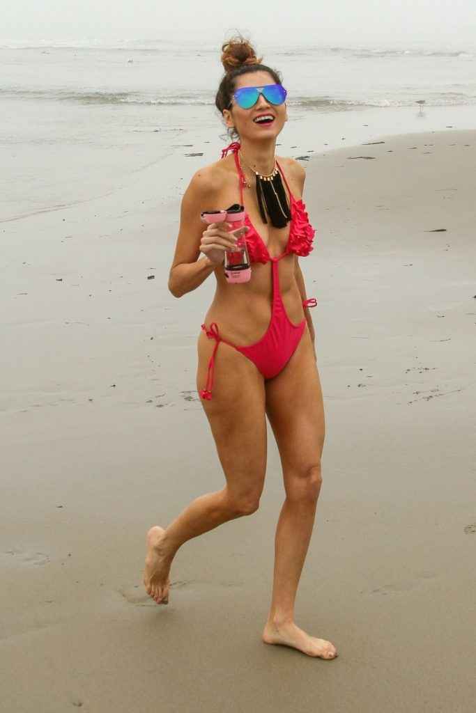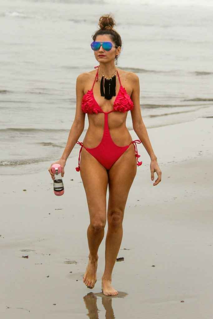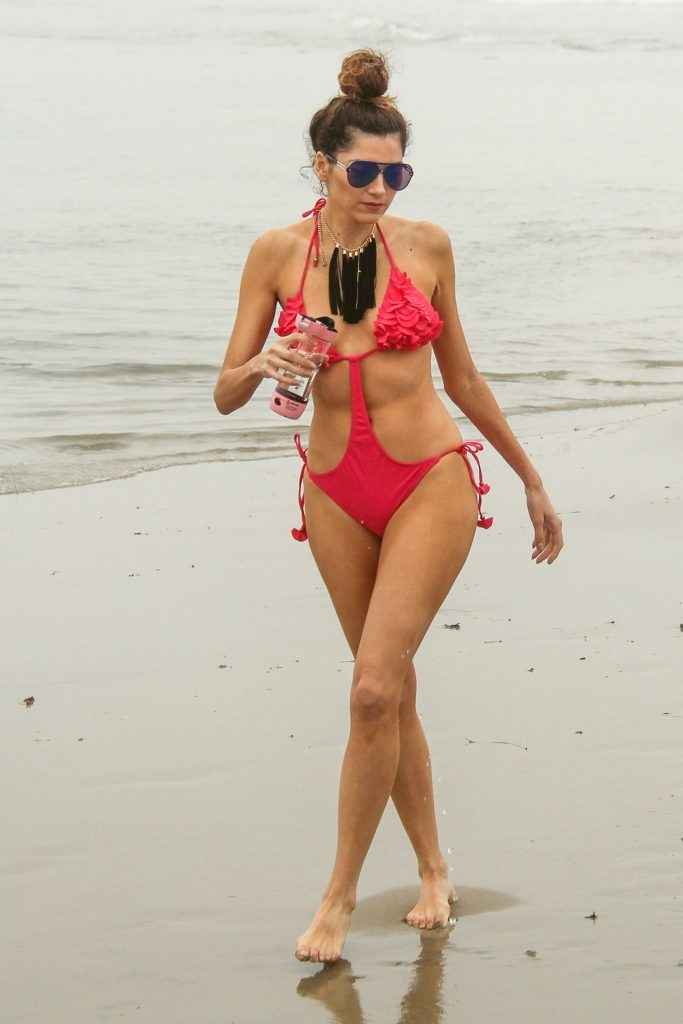 Blanca Blanco dans un maillot de bain rose à Malibu