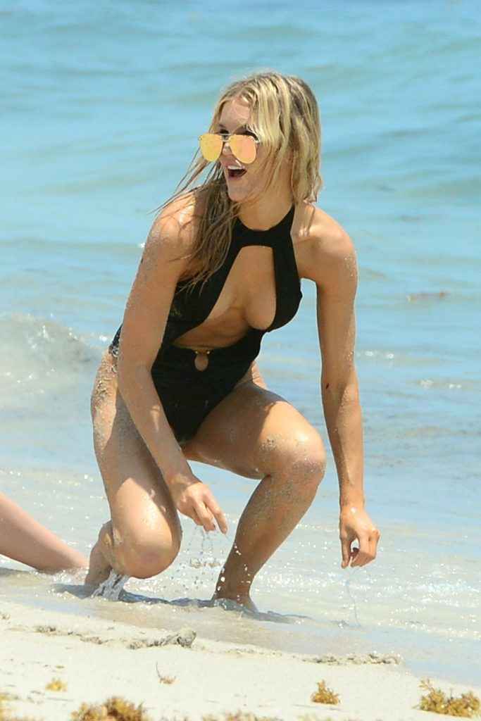 Danniella Westbrook montre ses seins sur la plage