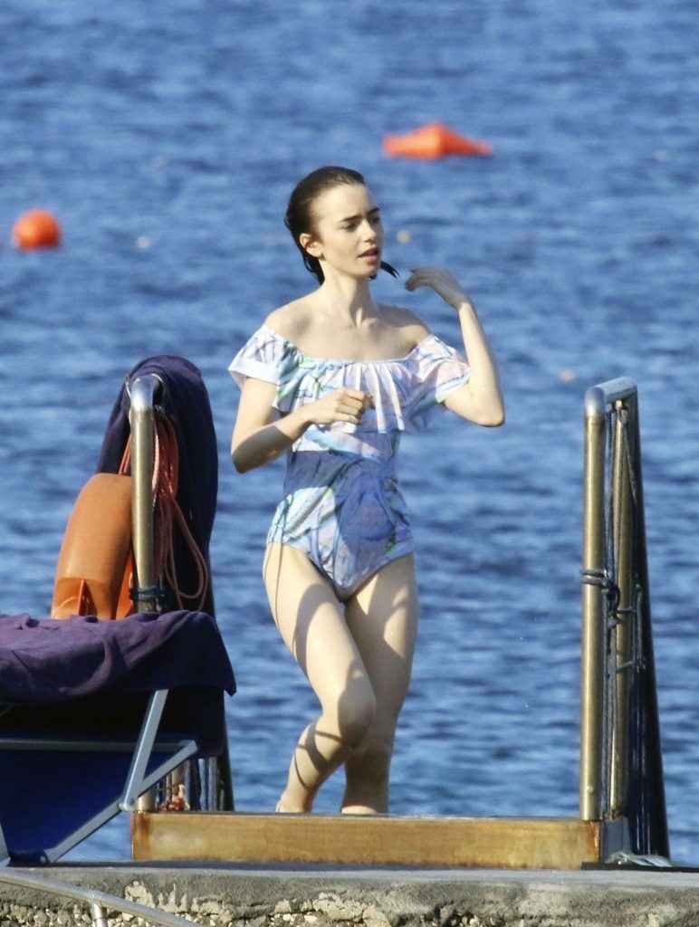 Lily Collins en maillot de bain à Ischia