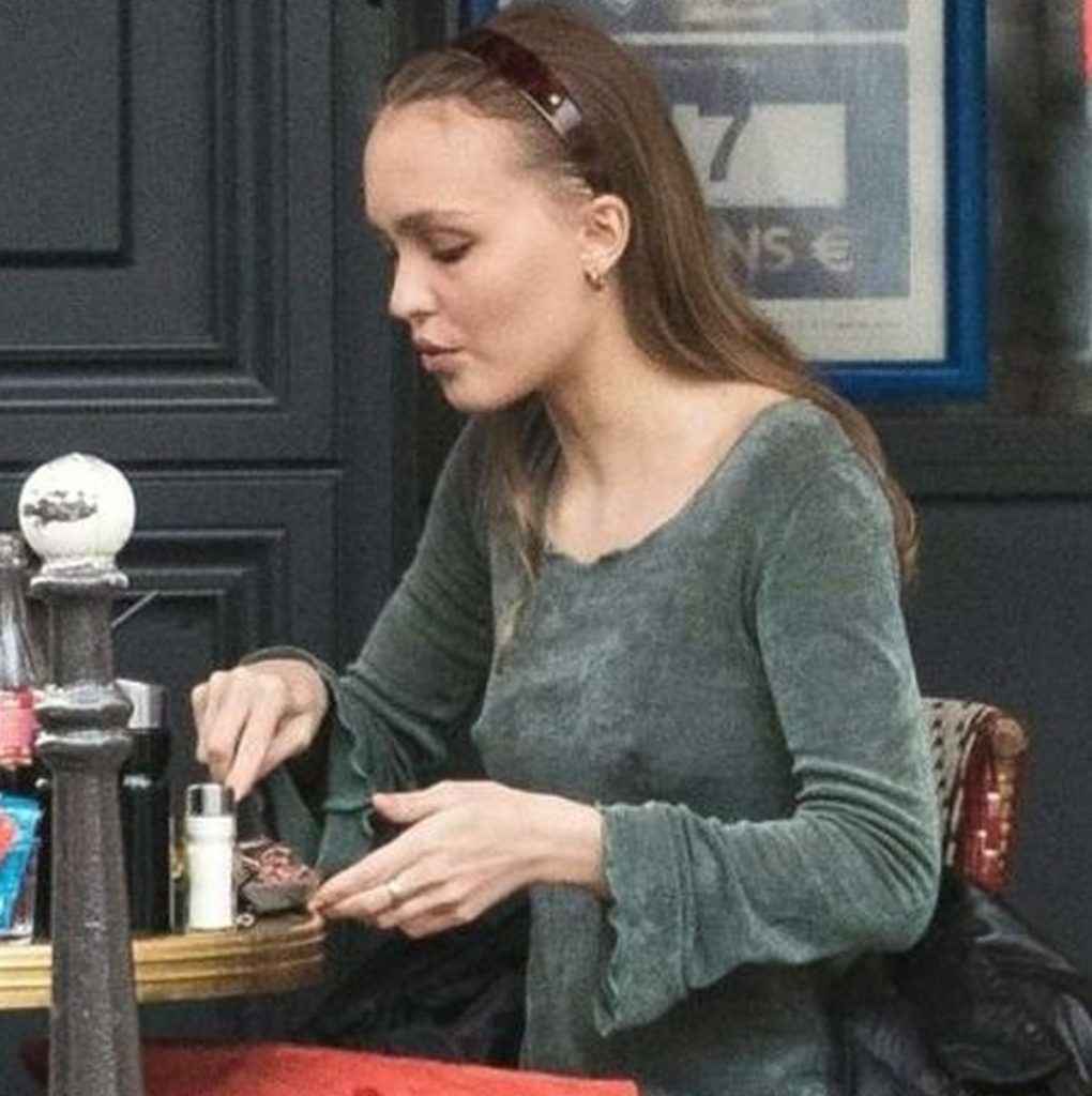 Lily Rose Depp a les seins qui pointent à la terrasse d’un bar