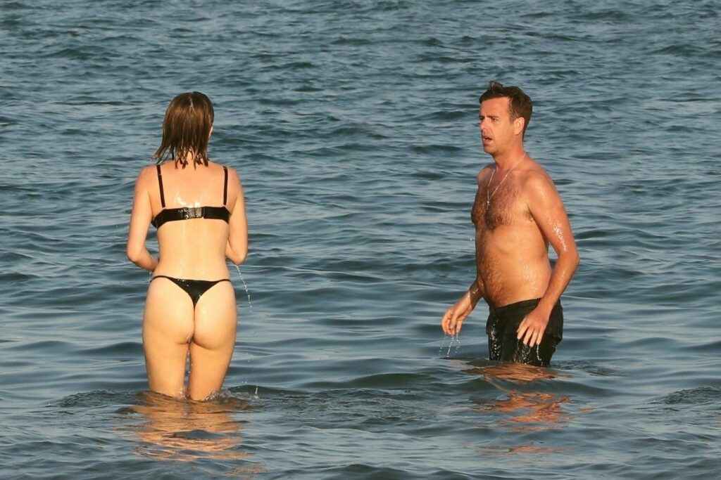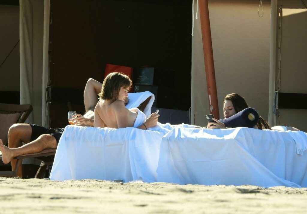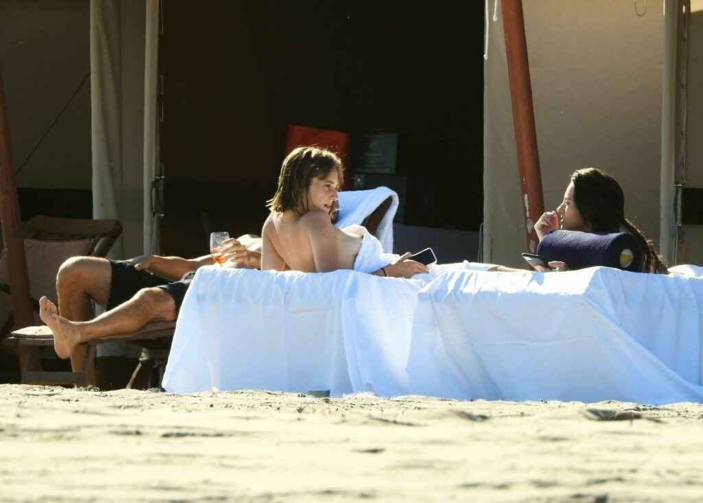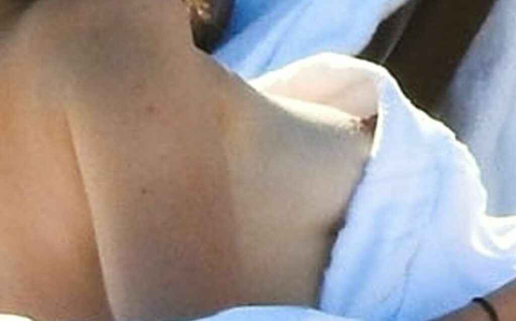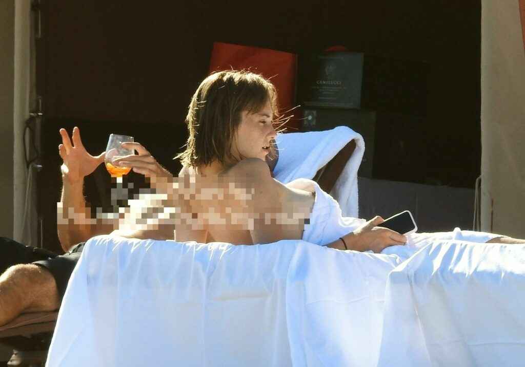 Claudia Galanti bronze seins nus à Miami