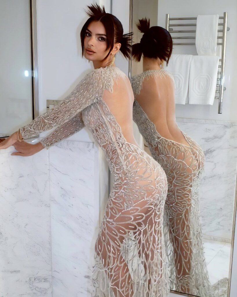 Emily Ratajkowki a éblouit le Met Gala avec sa tenue transparent qui dévoile ses seins et ses fesses 🙂