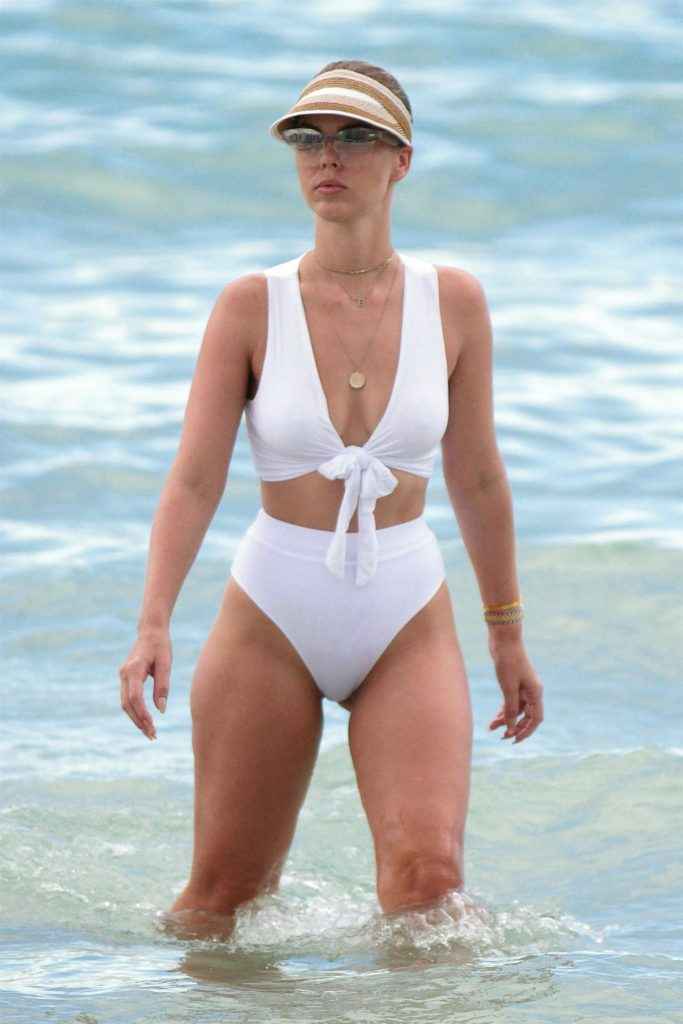 Bianca Elouise dans un bikini blanc à Miami