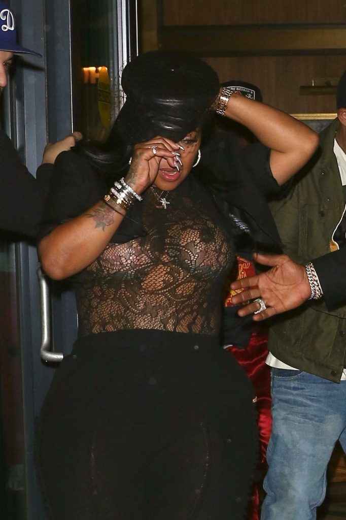 Chrissy Lampkin exhibe ses gros seins sous son chemisier transparent