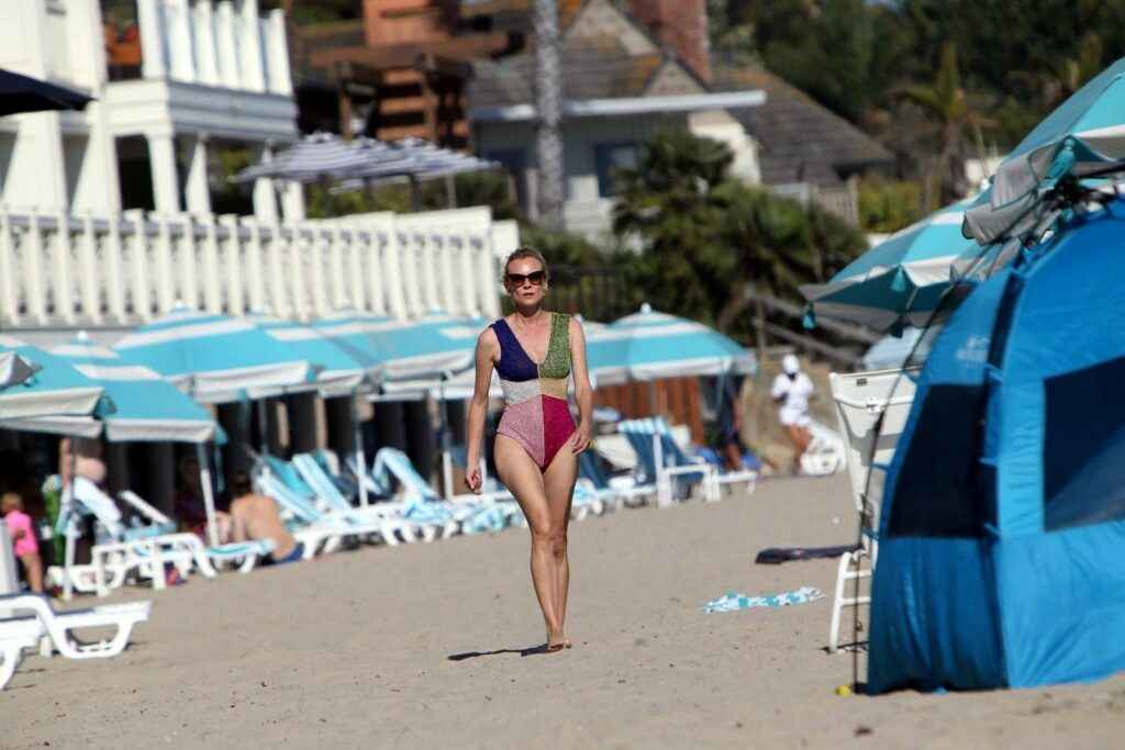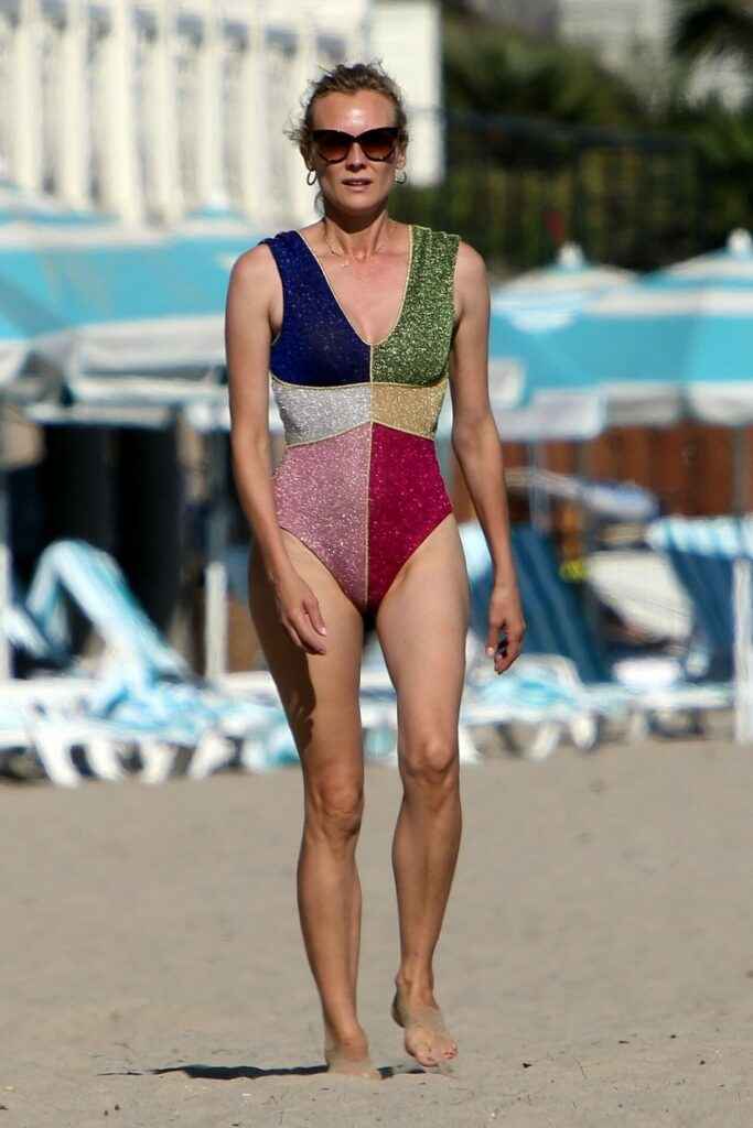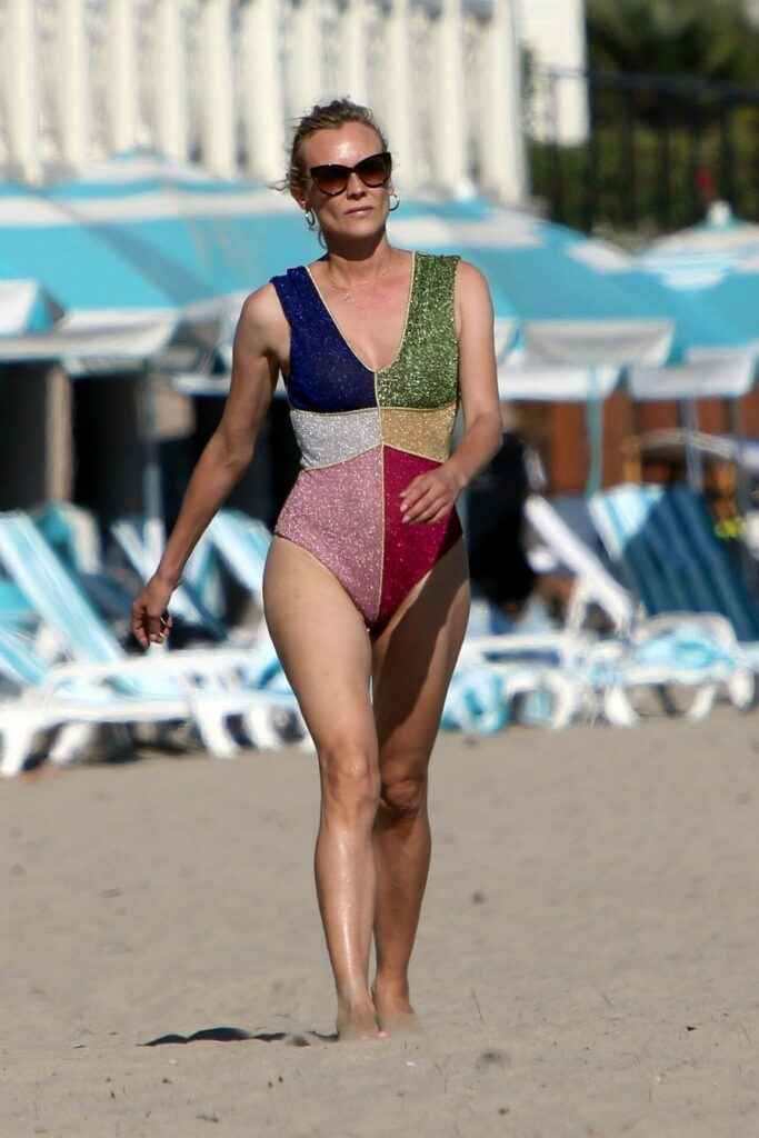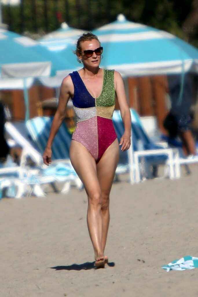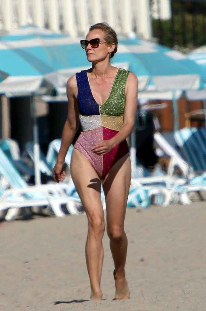 Diane Kruger sexy dans un maillot de bain multicolore