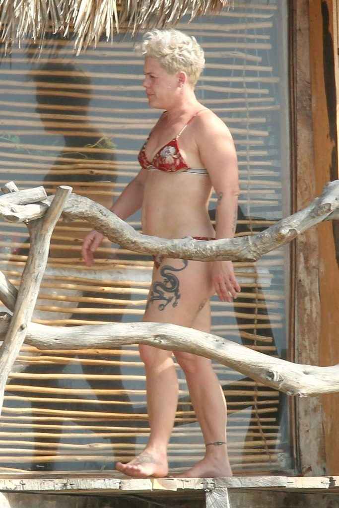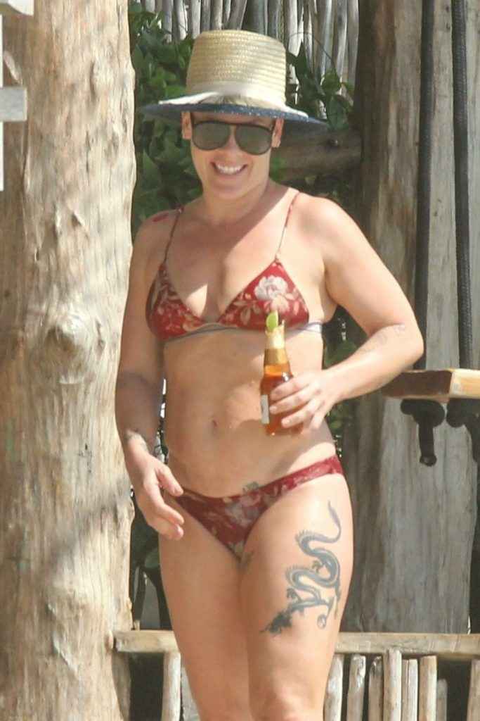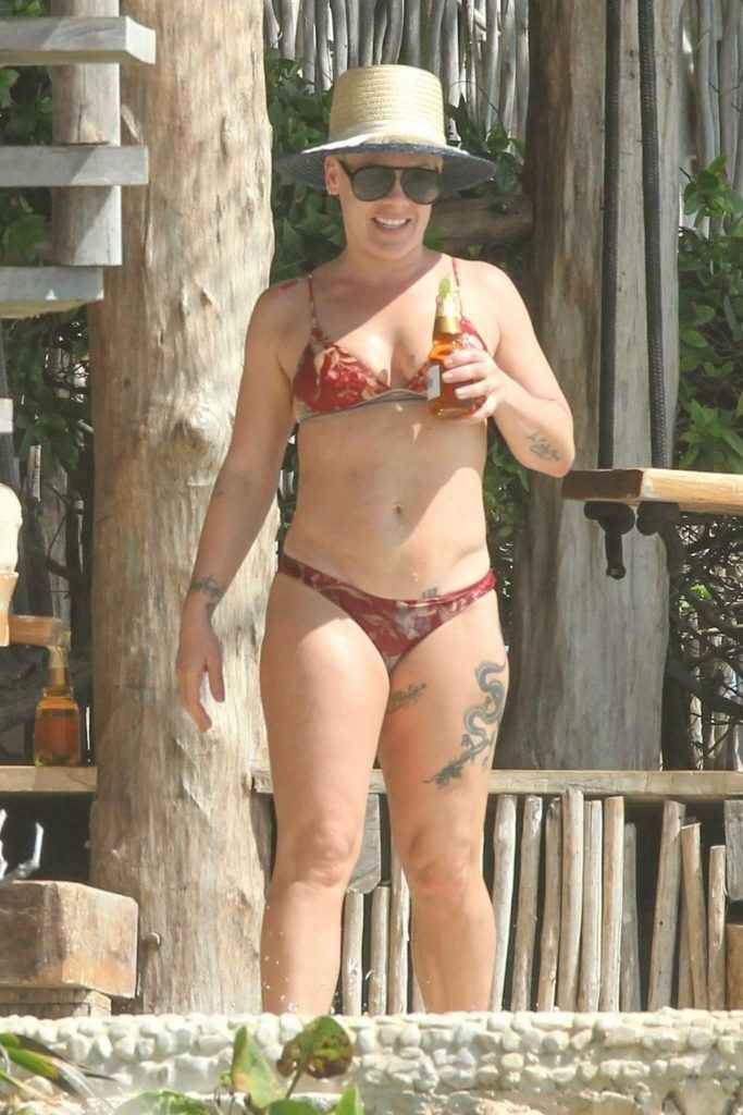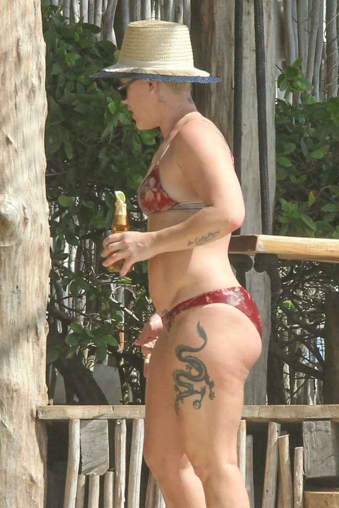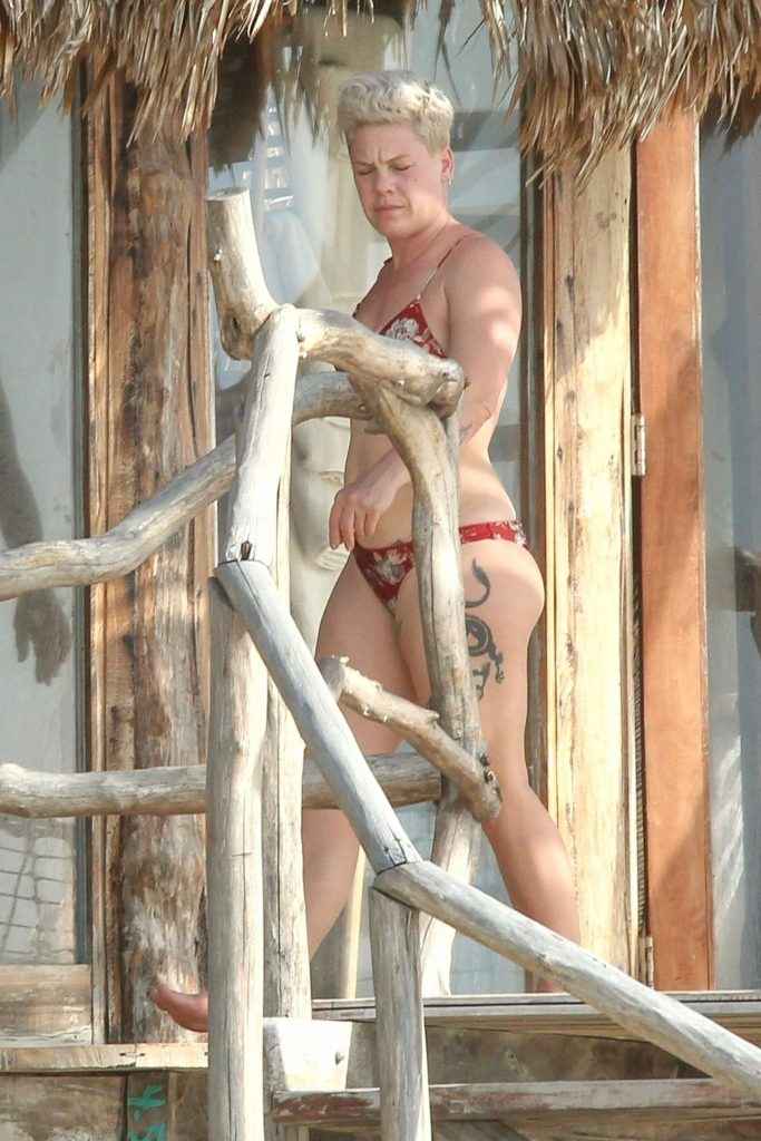 Pink en bikini au Mexique