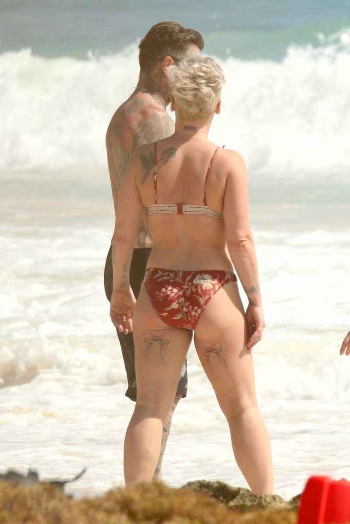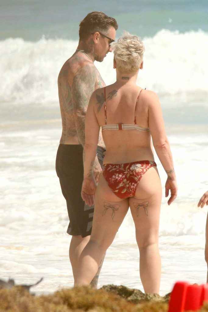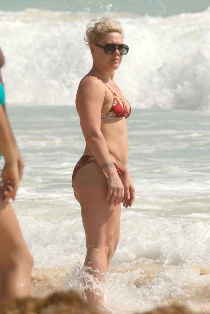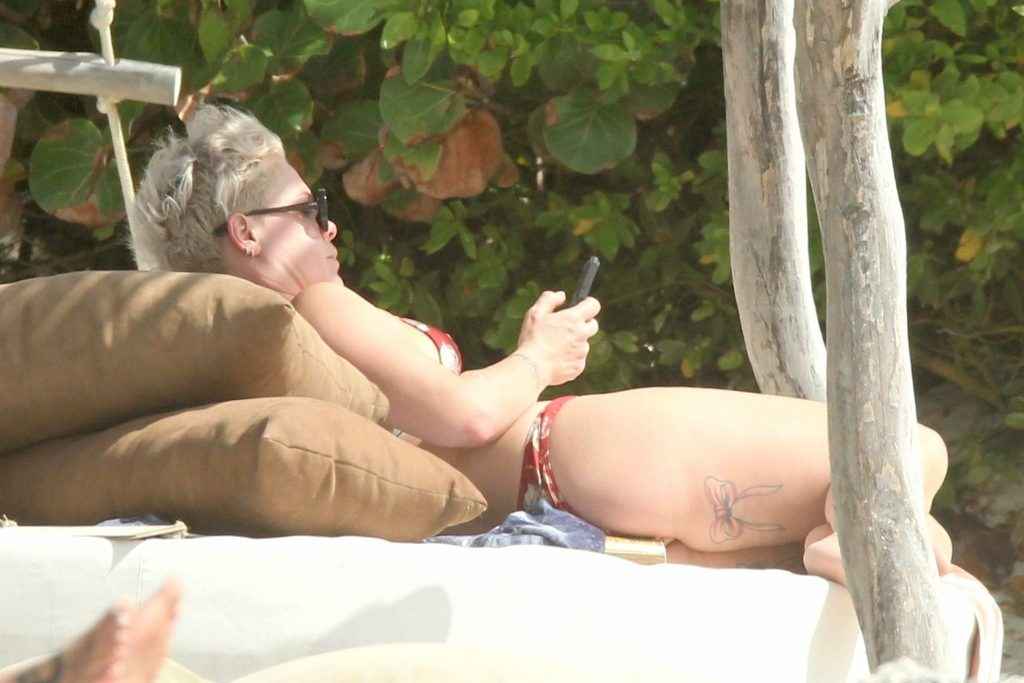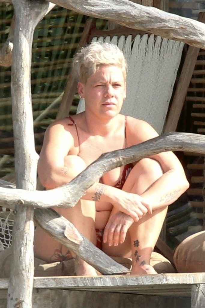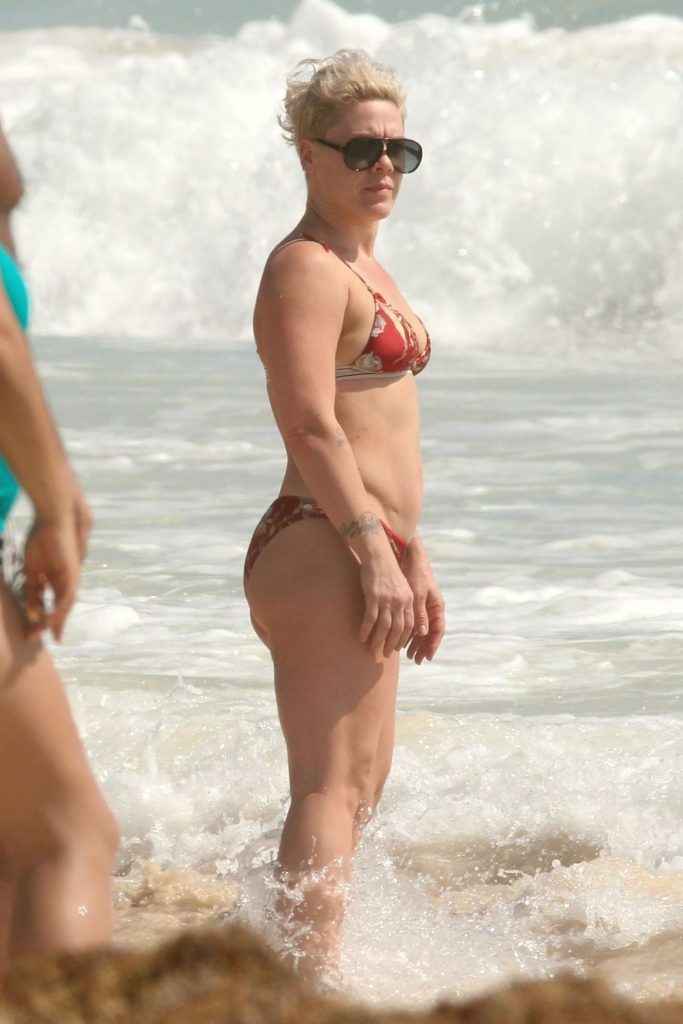 Pink en bikini au Mexique