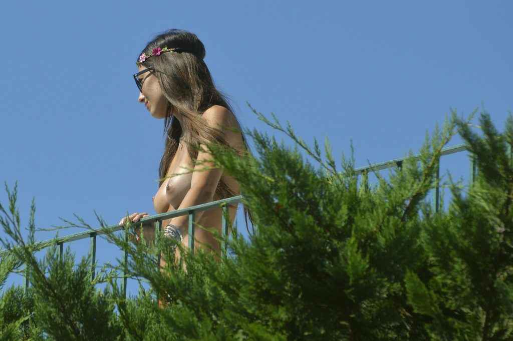 Anja Rubick exhibe ses seins à Paris