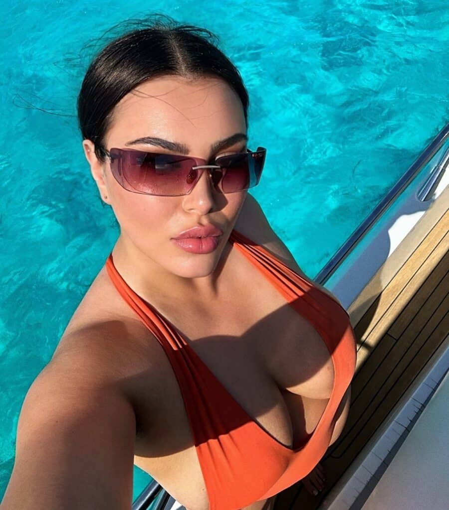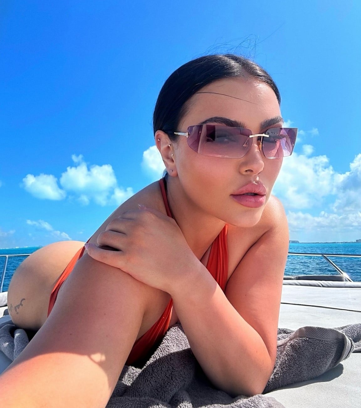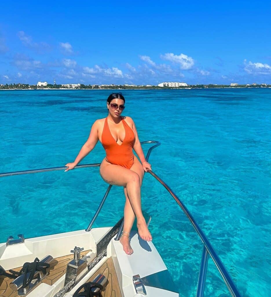 L’influenceuse de beauté profite d’un bon moment sur un yacht