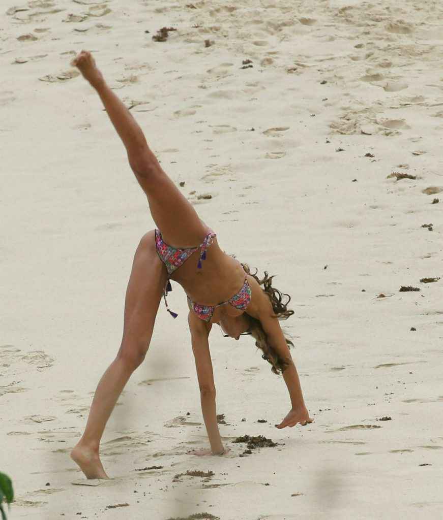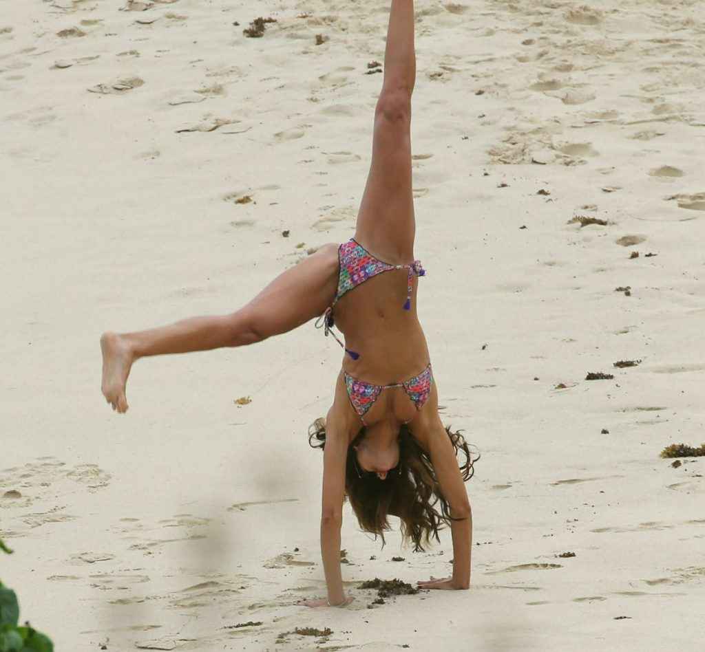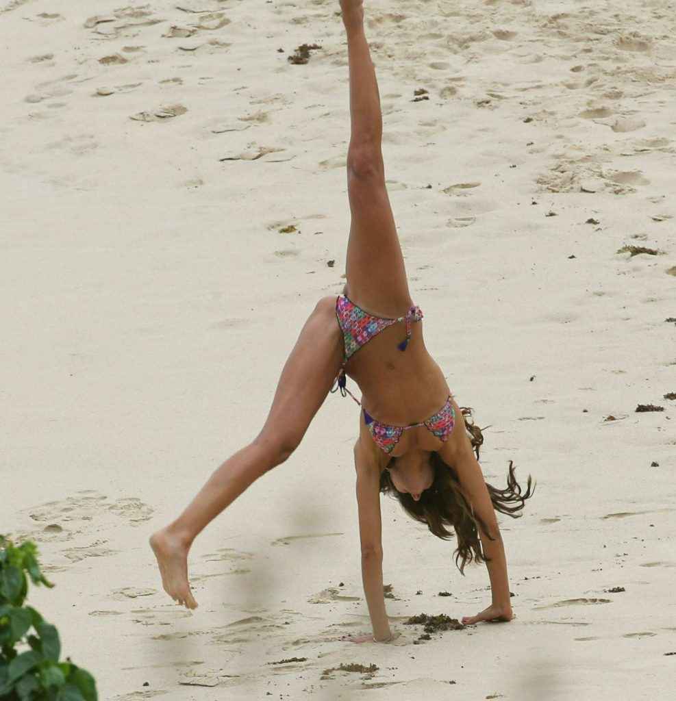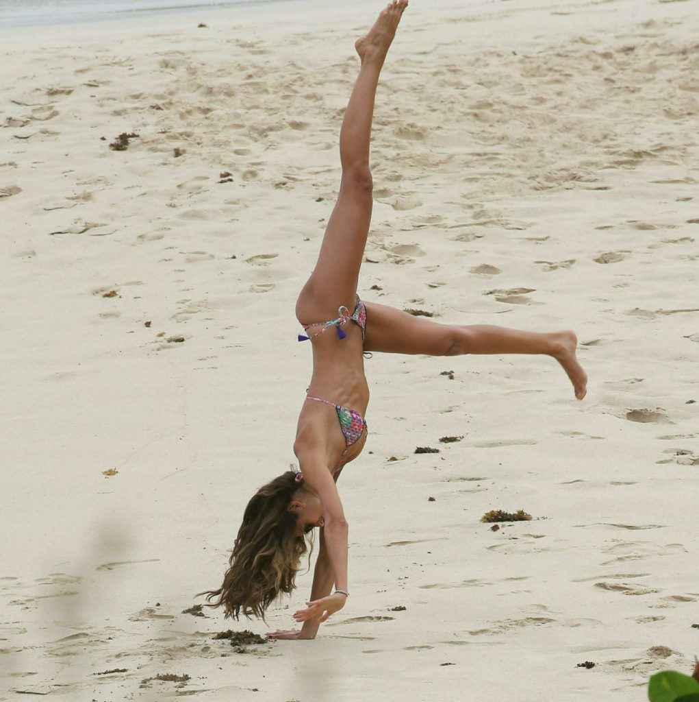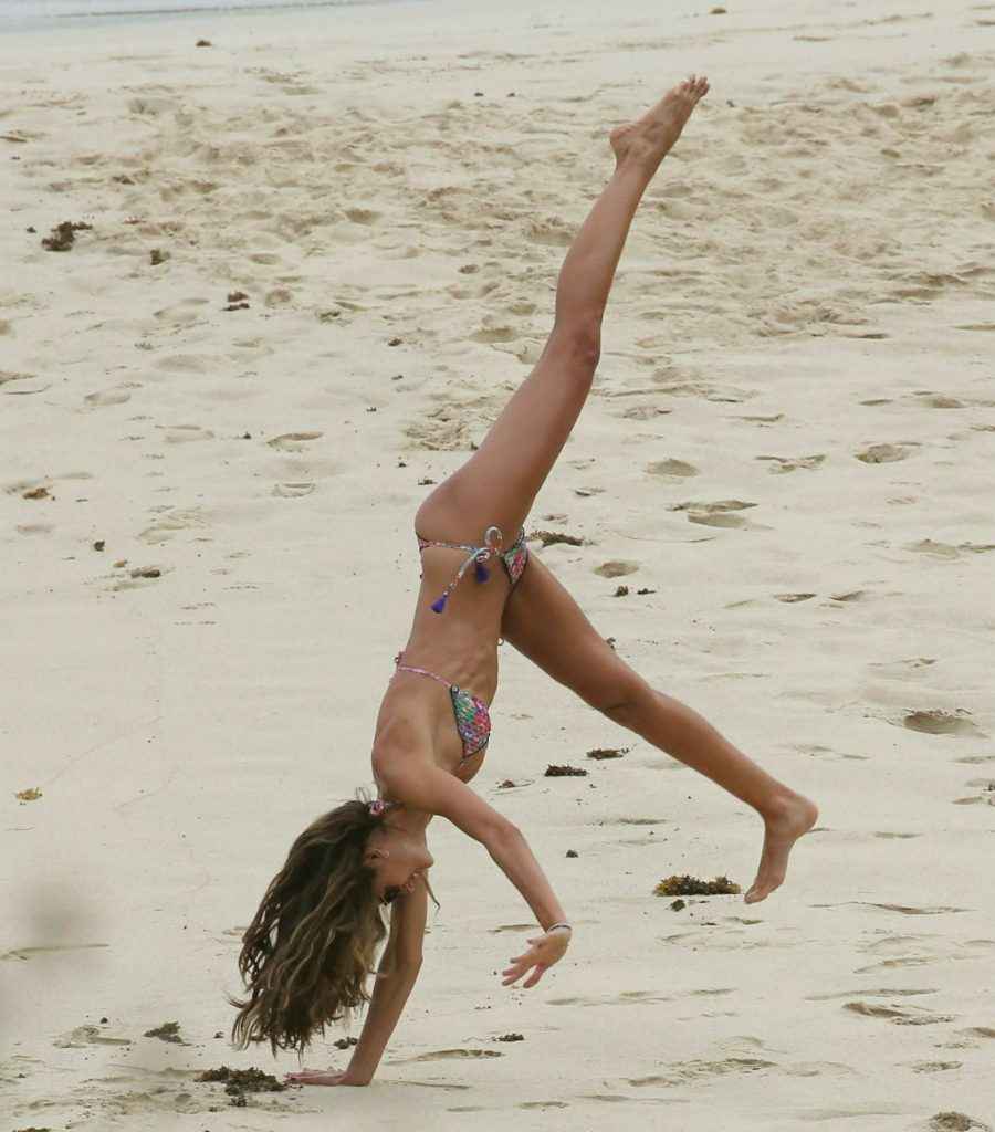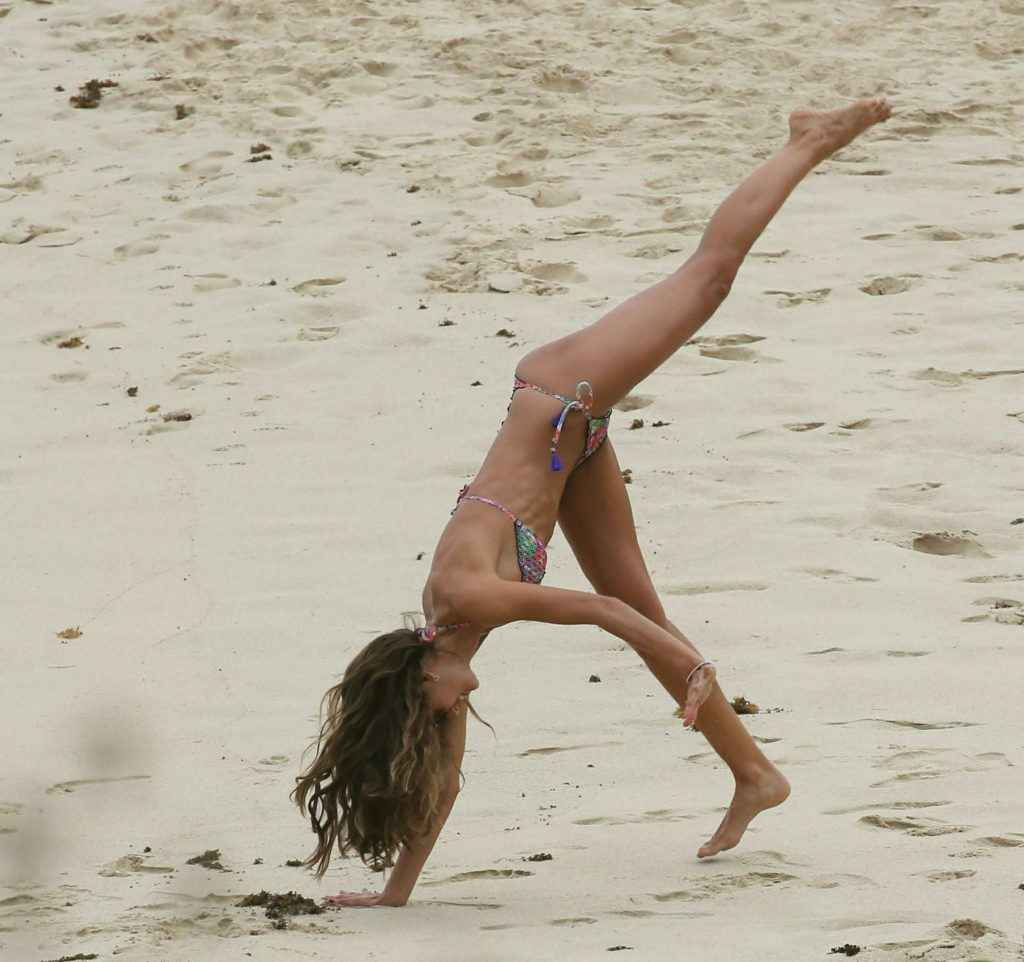 Izabel Goulart fait la roue en bikini à Saint Barth