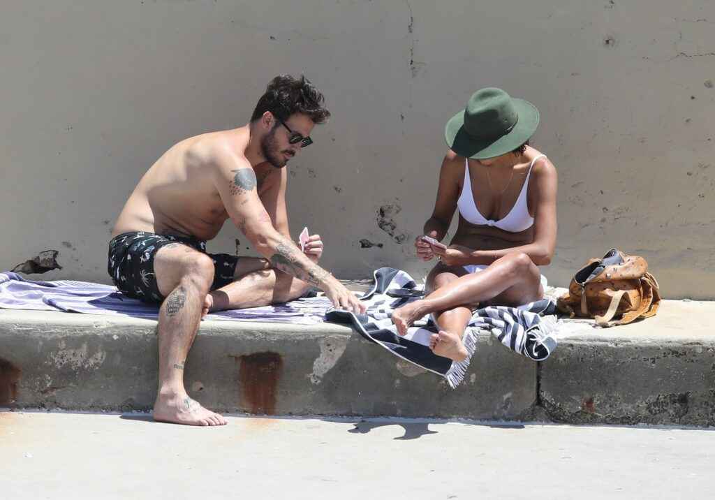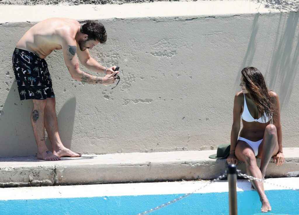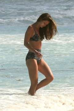 Pia Miller Sexy en bikini blanc sur la plage