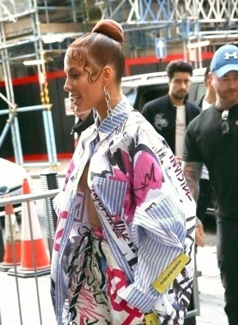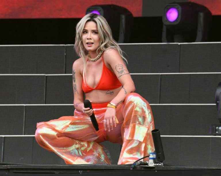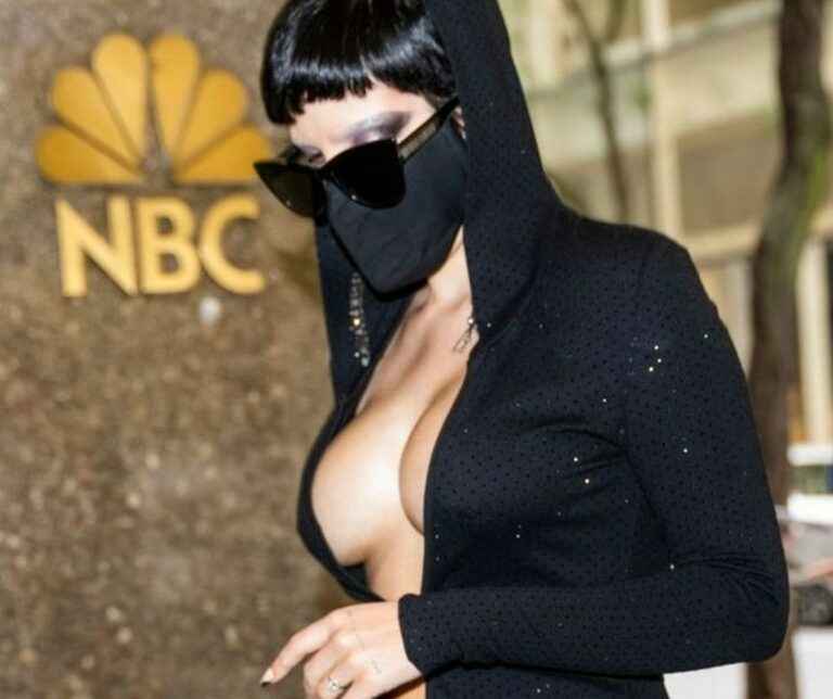 Halsey a les seins qui pointent à l’entrée des stdios KissFM à Londres