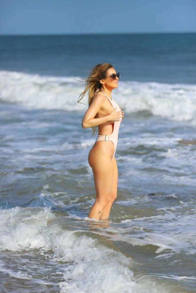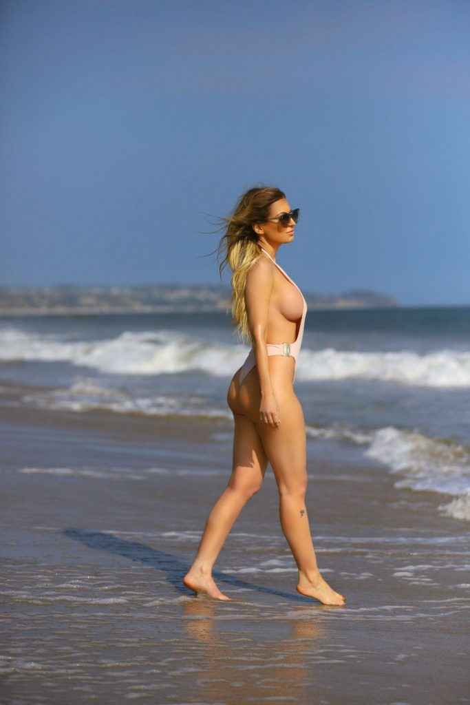 Ana Braga en maillot de bain à Malibu avec un sein à l’air