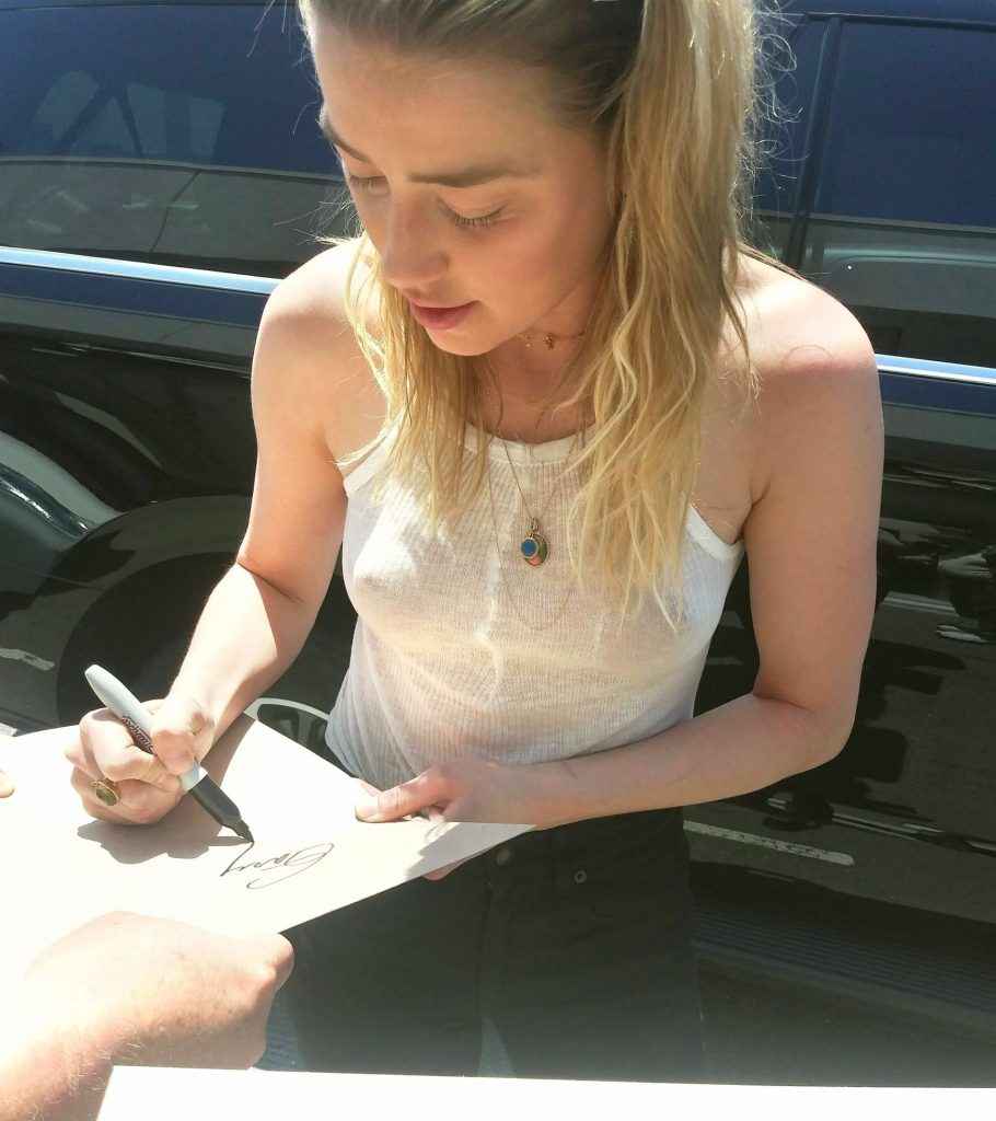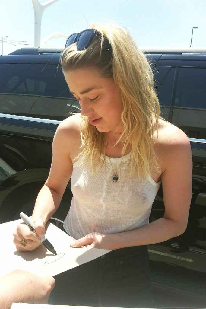 On voit les seins d’Amber Heard sous son teeshirt transparent