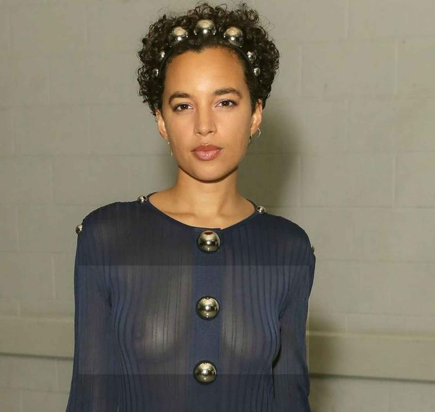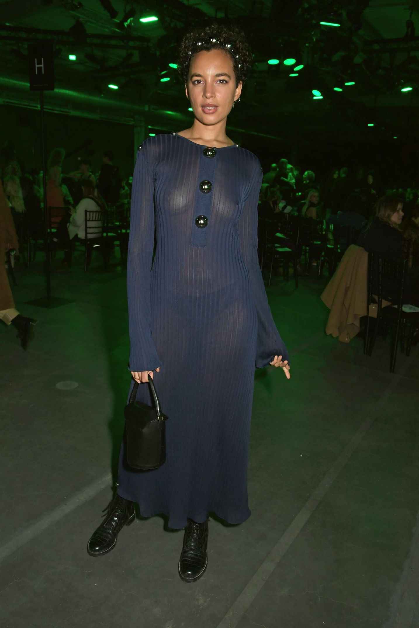Phoebe Collings James seins nus sous sa robe transparente
