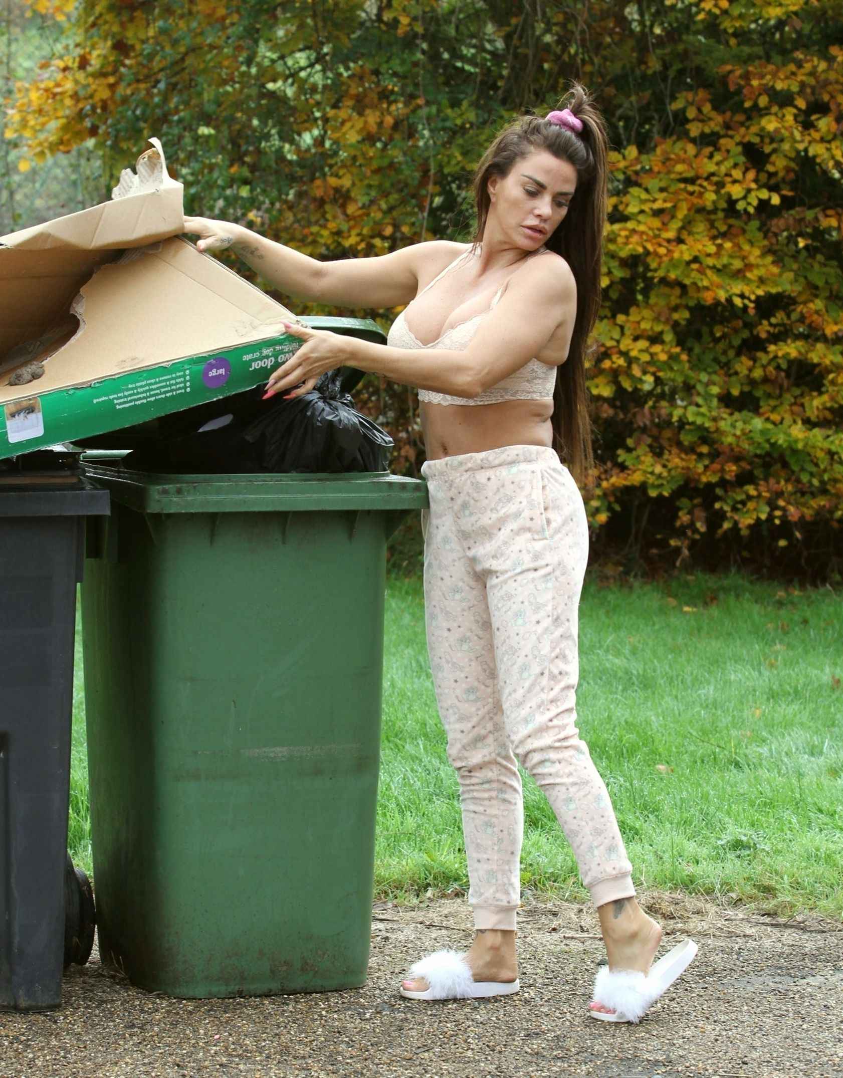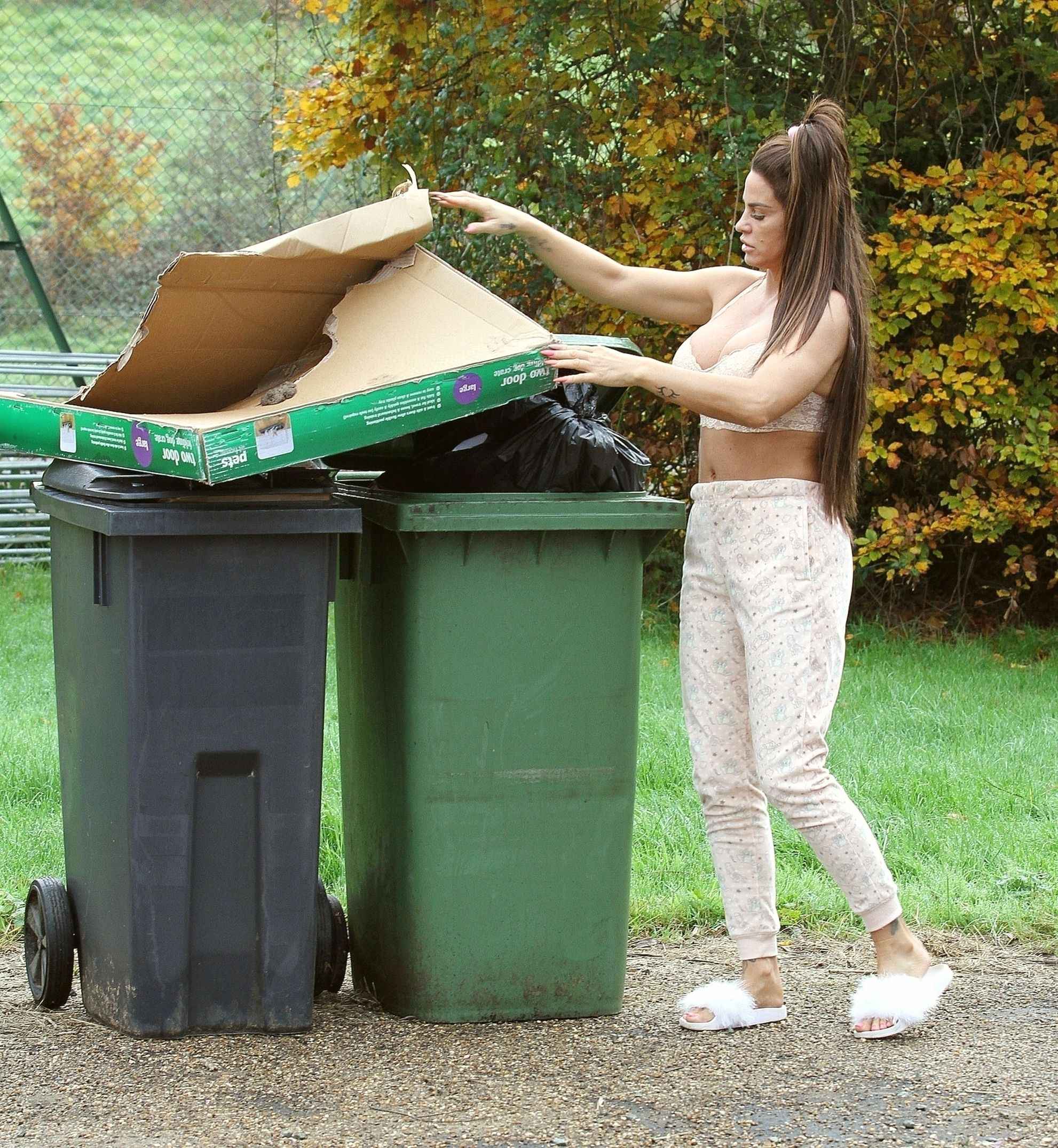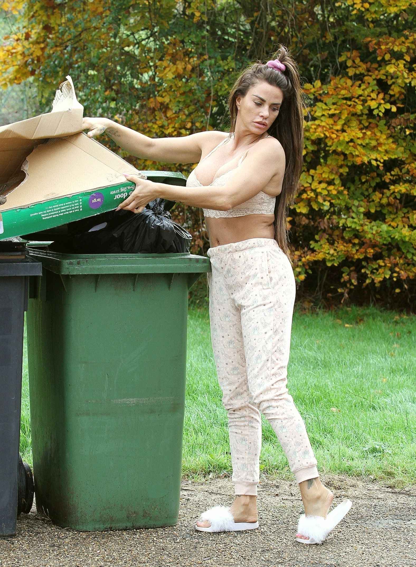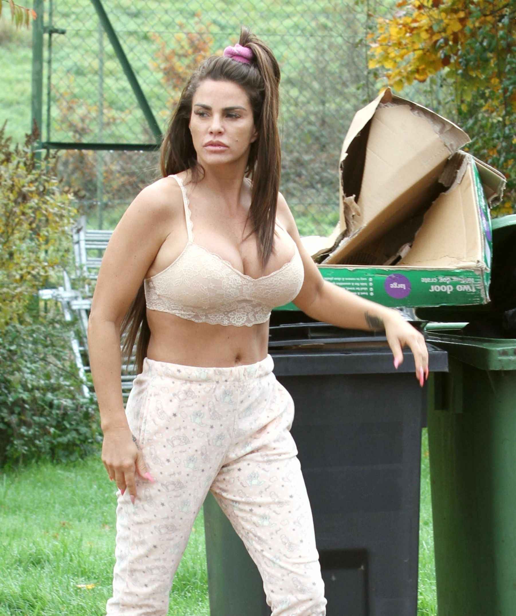 Katie Price sort les poubelles en soutien-gorge
