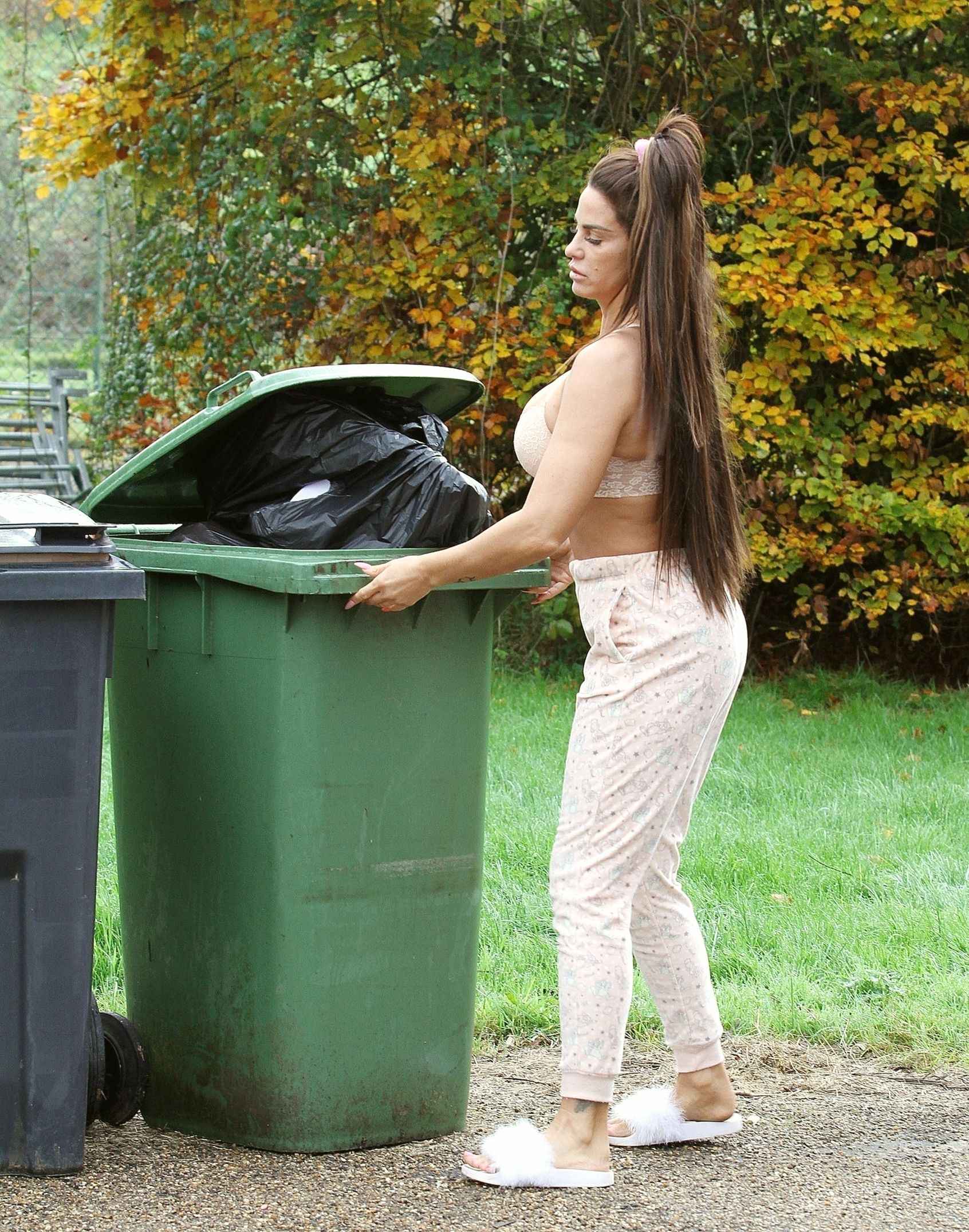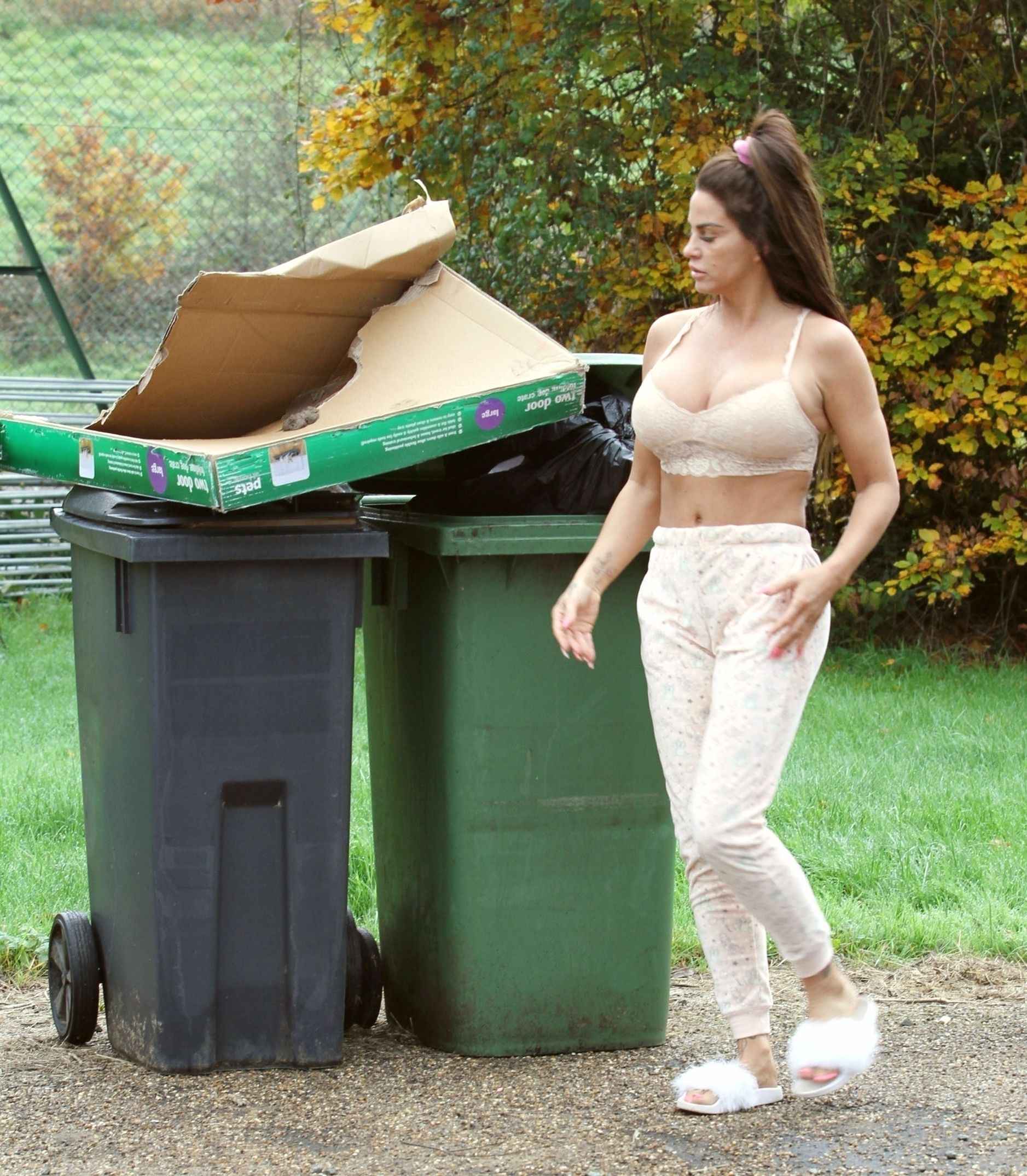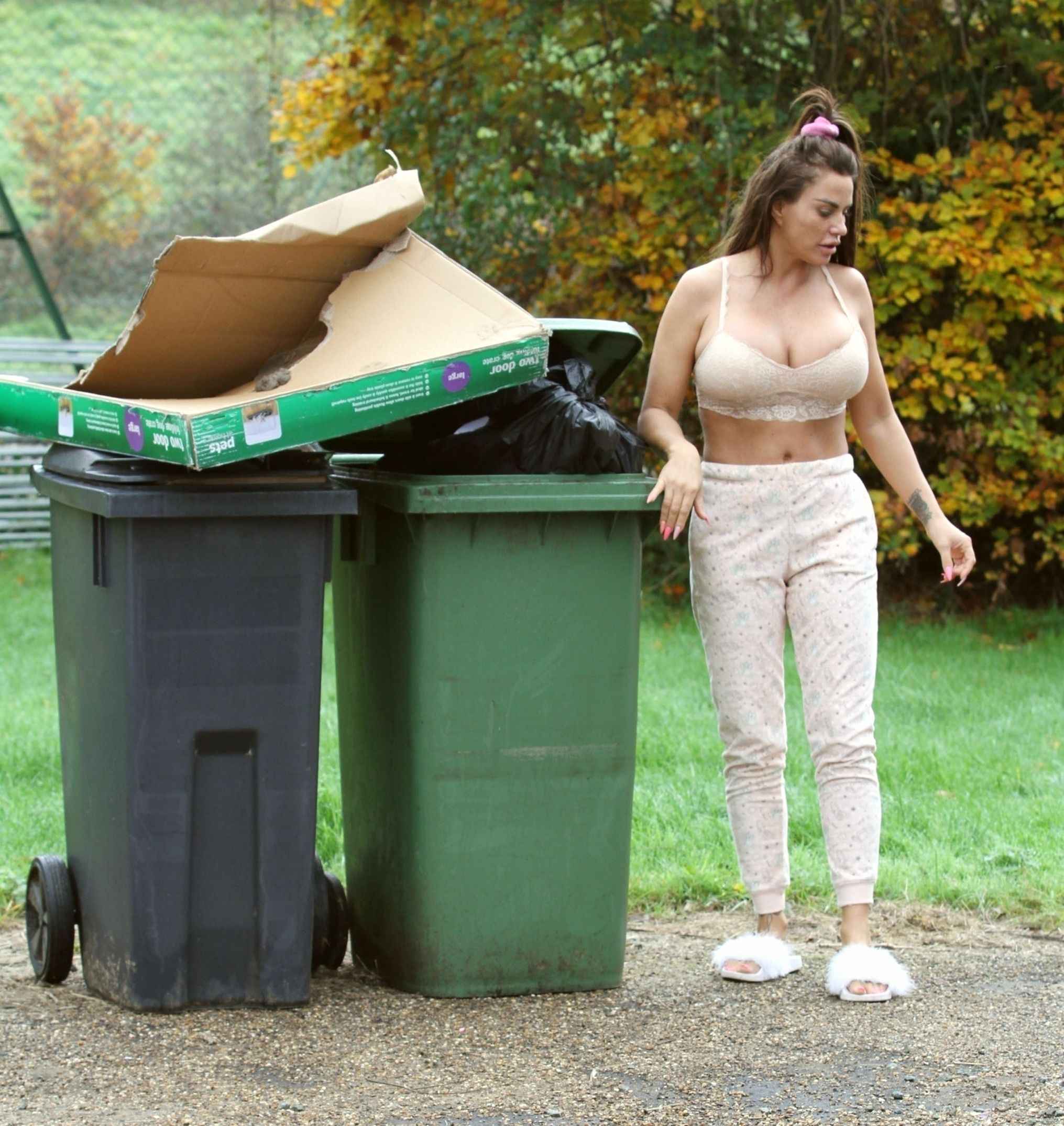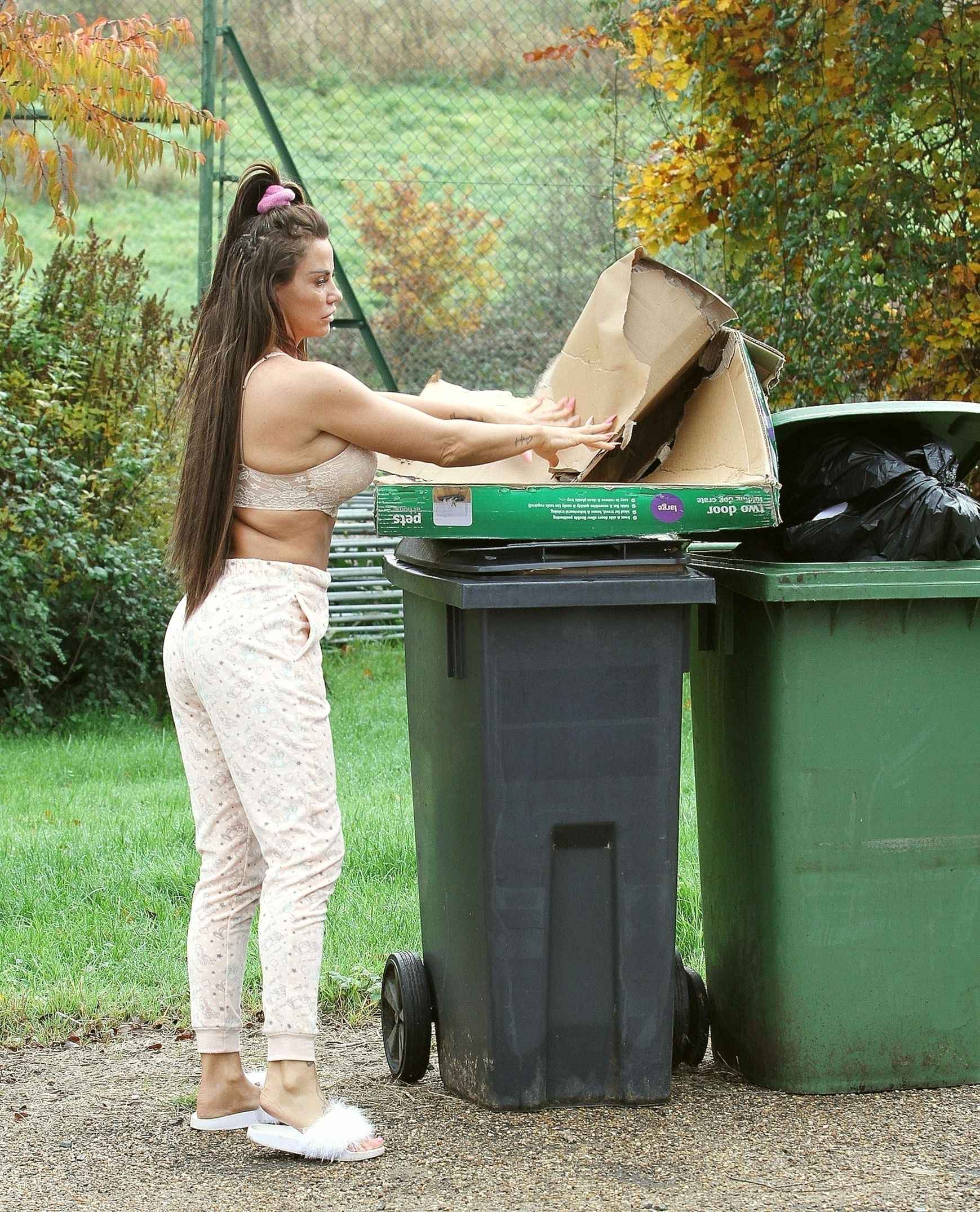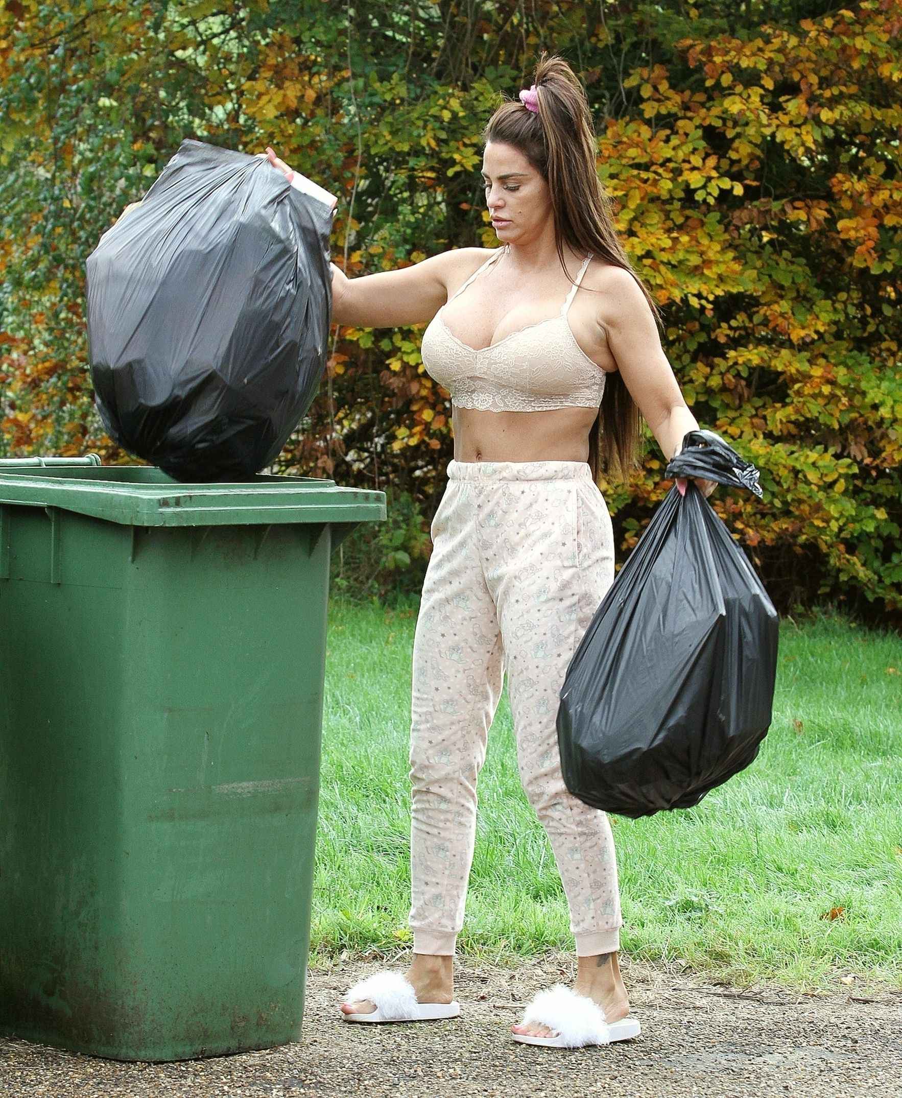 Katie Price sort les poubelles en soutien-gorge